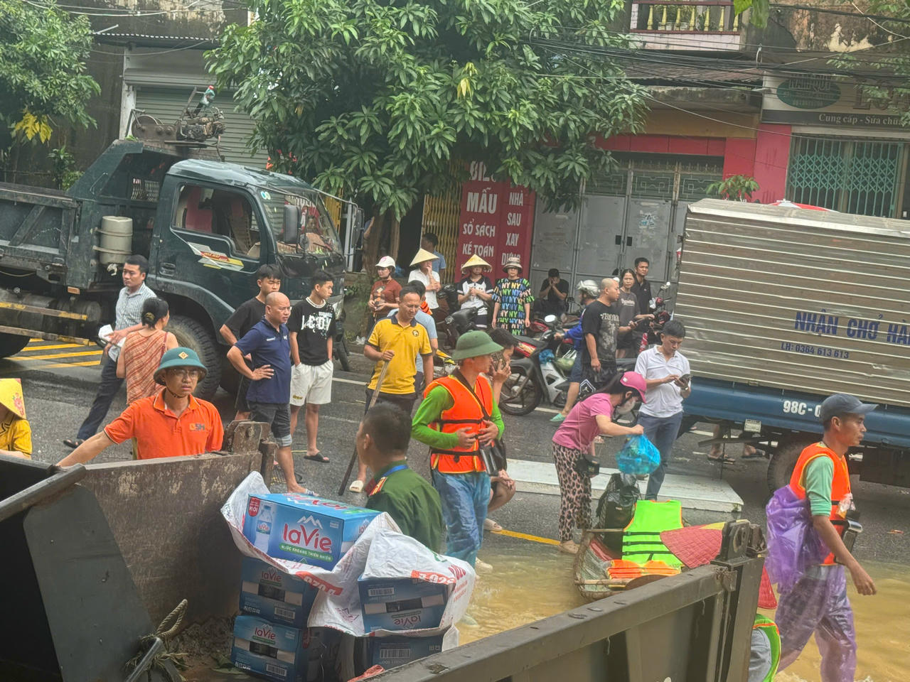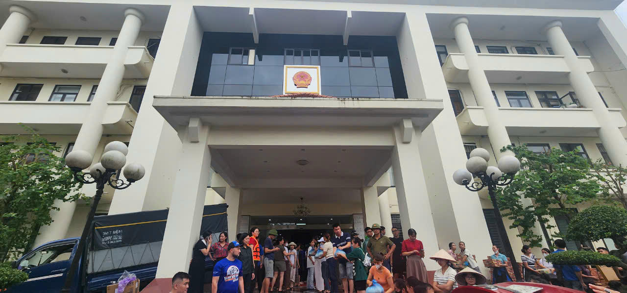 Trụ sở UBND TP Thái Nguyên tiếp nhận nhu yếu phẩm của người dân ủng hộ vùng lũ
