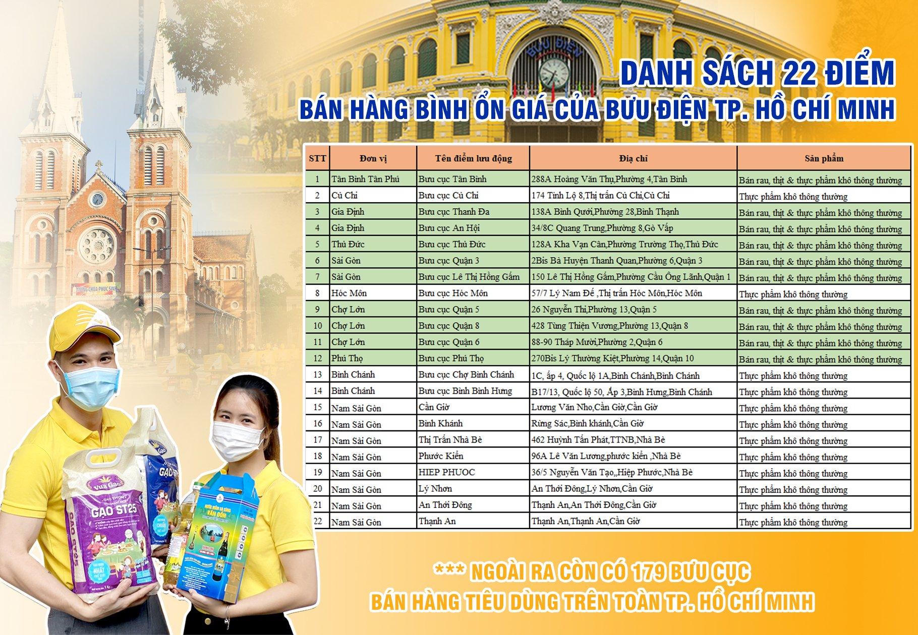 179 điểm bán một số hàng hóa thiết yếu và 22 điểm bán hàng bình ổn giá trên địa bàn TP HCM đã được Bưu điện Việt Nam phối hợp với Sở Công thương TP HCM kích hoạt để phục vụ đông đảo người dân thành phố.