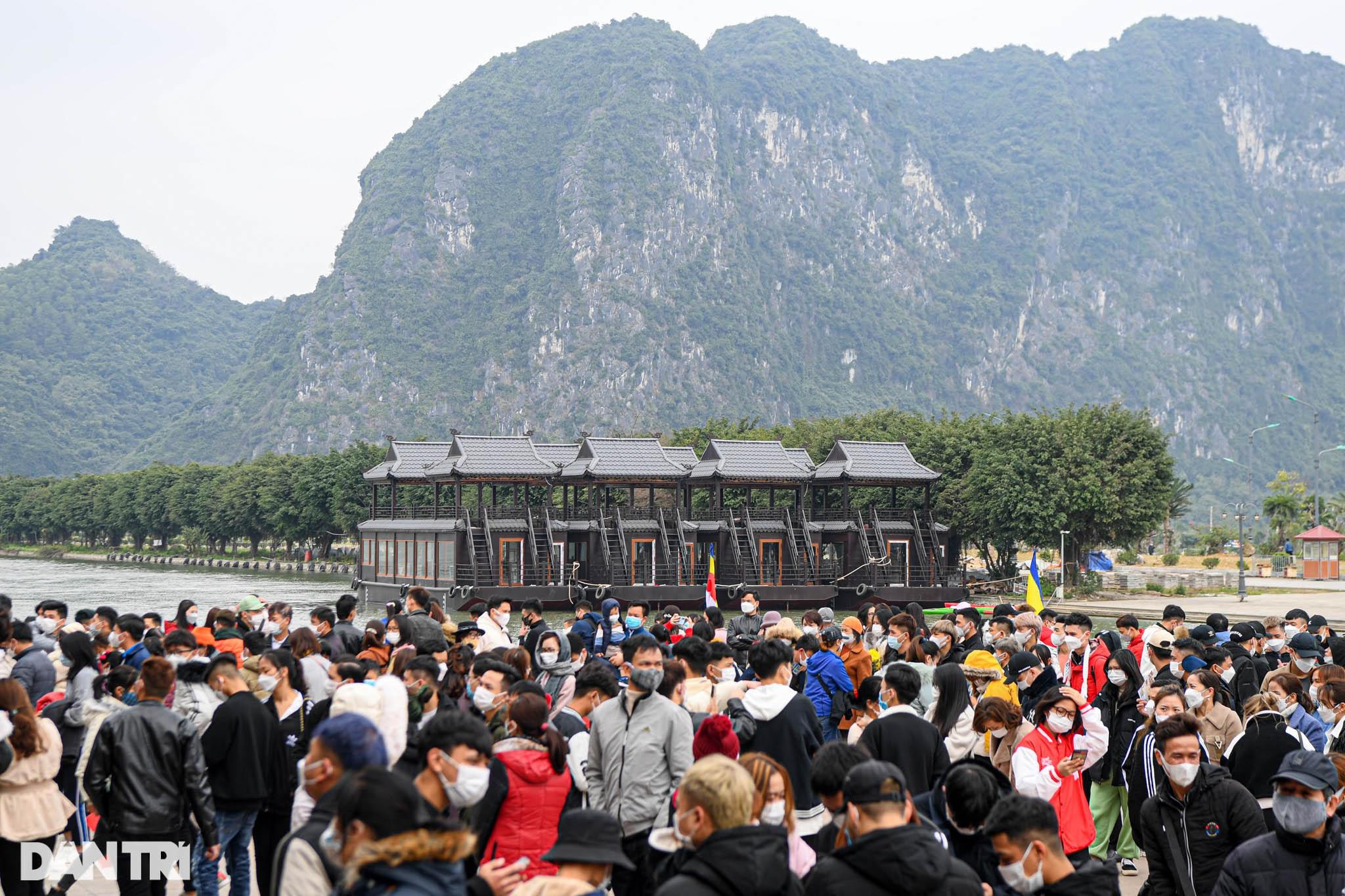 Theo Ban quản lý chùa Tam Chúc, ngay từ sáng mùng 4 Tết, lượng khách từ nhiều địa phương đã đổ về khu du lịch tâm linh Tam Chúc khiến một số thời điểm bị ùn ứ đoạn đường vào cổng hoặc quầy bán vé tàu.