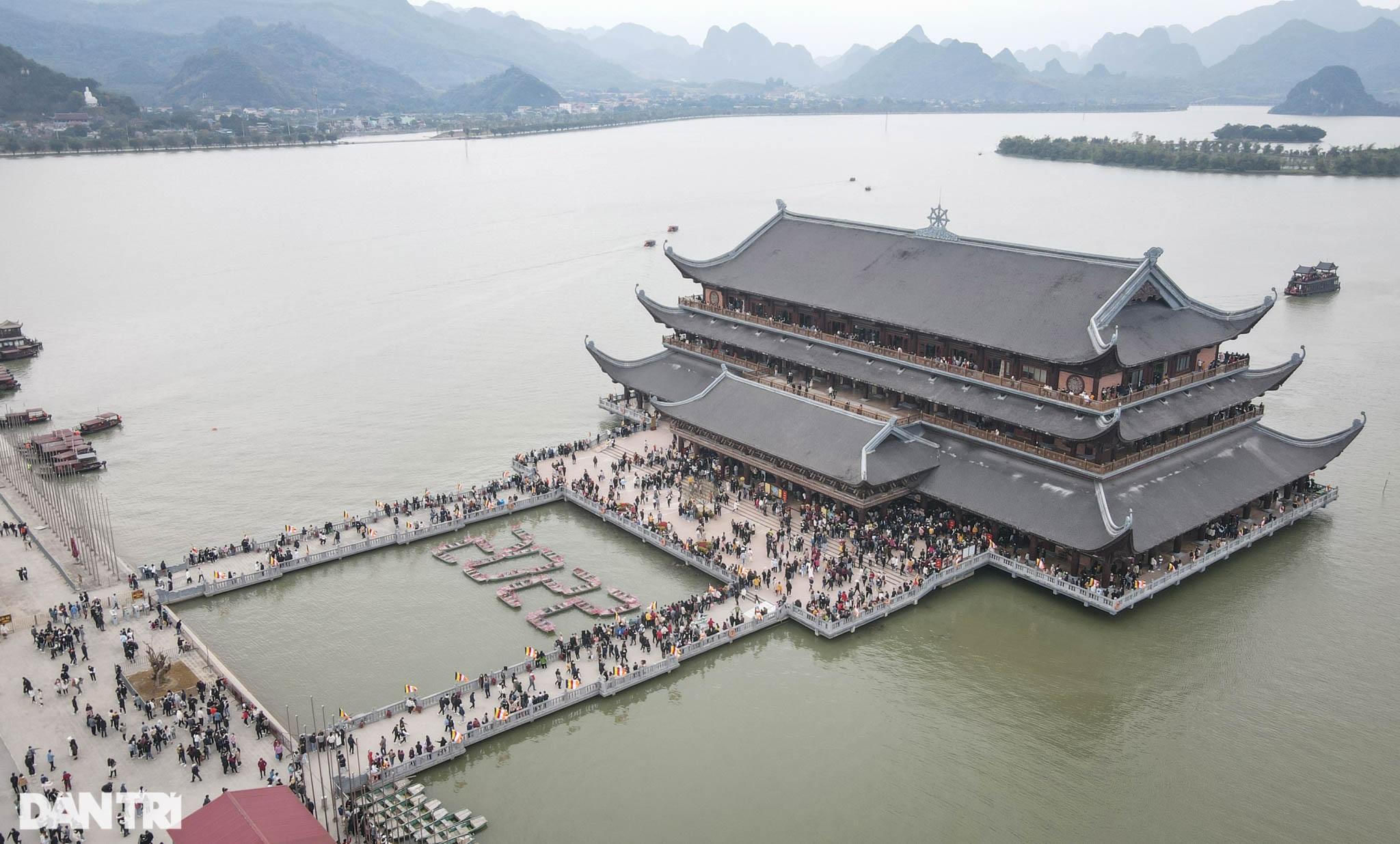Ghi nhận vào ngày mùng 4 Tết Nhâm Dần (ngày 4/2), hàng nghìn người dân đã đổ về quần thể khu du lịch tâm linh chùa Tam Chúc, tuy nhiên lượng khách này so với những năm chưa có dịch COVID-19 thì còn khá khiêm tốn.
