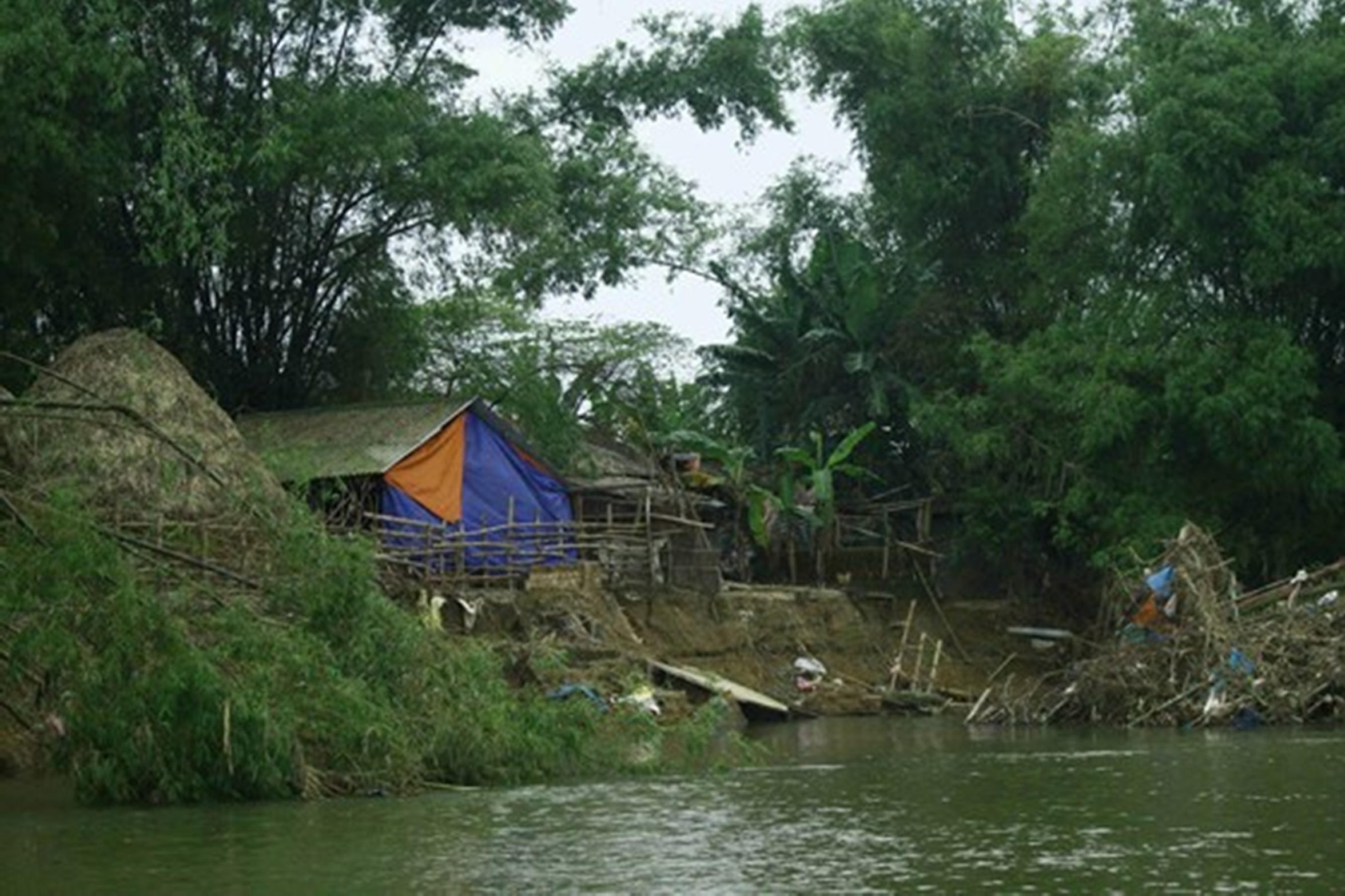 Ông Nguyễn Văn Nam (thôn Đông Yên 3) cho biết: “Cả tháng nay, nước sông luôn ở mức cao. Có hôm nước lên rất nhanh, chỉ trong chốc lát đã cuốn trôi gần chục mét đất, kéo tới vách chuồng heo, sập cả cây cối hàng chục năm tuổi. Hiện giờ nhà tôi chỉ còn cách bờ sống chưa tới 4m, mực nước sống sát vườn nhà sâu hơn 7m”.