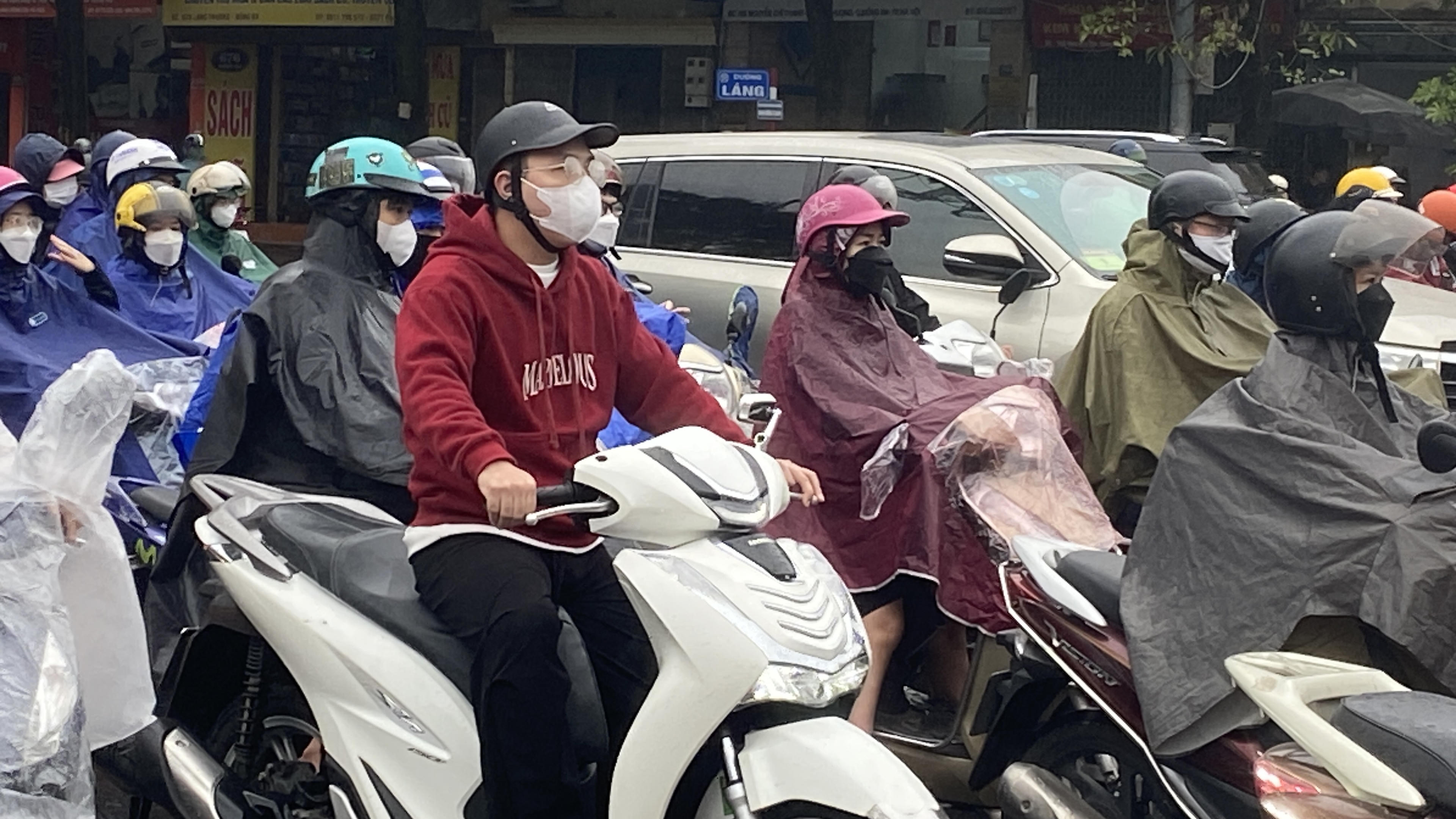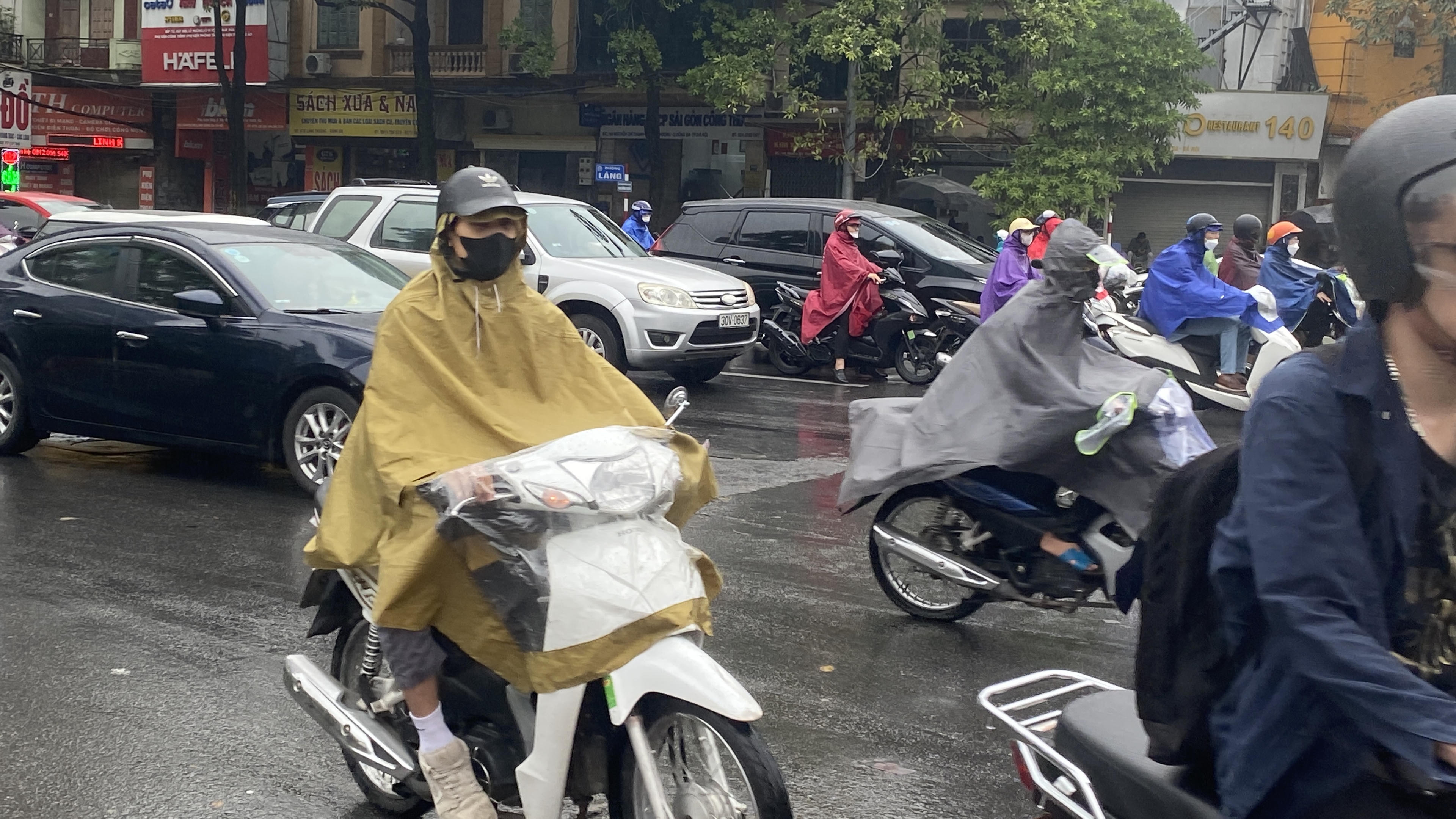 (PLVN) - Sáng 13/11, do ảnh hưởng của không khí lạnh, thời tiết Hà Nội xuất hiện mưa, nhiệt độ giảm mạnh, học sinh và người dân đi làm trong mưa rét cảm nhận rõ sự thay đổi của nhiệt độ.