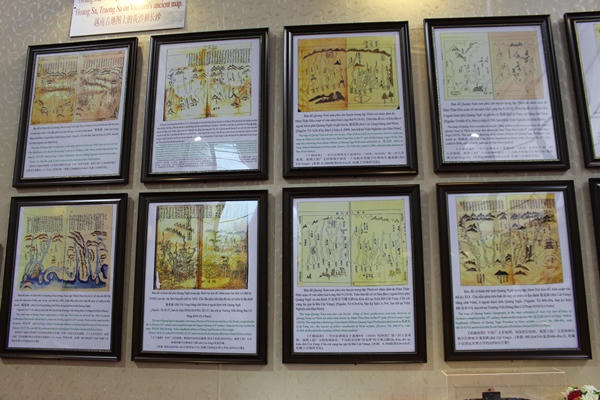 Triển lãm còn trưng bày bộ sưu tập gồm 65 bản đồ chứng minh chủ quyền của Việt Nam đối với quần đảo Hoàng Sa và quần đảo Trường Sa, do Việt Nam, phương Tây công bố từ thế kỷ XVII đến nay; trưng bày tư liệu về “Hoàng Sa, Trường Sa trong trái tim Việt Nam” được thể hiện rất sinh động thông qua những hình ảnh, tài liệu, hiện vật thể hiện sự quan tâm, tình cảm đặc biệt của Đảng, Nhà nước, quân đội, các tổ chức chính trị-xã hội, nhân dân với những hành động thiết thực, chung sức bảo vệ chủ quyền biển đảo quê hương. Điều này thể hiện qua các phong trào, chương trình hoạt động hướng về Hoàng Sa, Trường Sa như: Nghĩa tình Hoàng Sa, Trường Sa; triệu trái tim hướng về biển đảo quê hương…