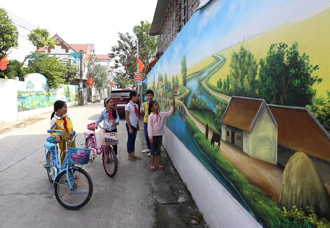 Không được chứng kiến cảnh sinh hoạt cộng đồng của bà con sau một ngày làm việc nhưng đường sá, cầu cống, đường điện, vườn hoa, đặc biệt những tuyến đường liên thôn, ngõ xóm được tô điểm bởi những bức vẽ nhiều màu sắc, trồng xen lẫn các chậu hoa, cây cảnh dọc các tuyến đường… đã phần nào nói lên thành quả của công cuộc xây dựng NTM nơi đây.