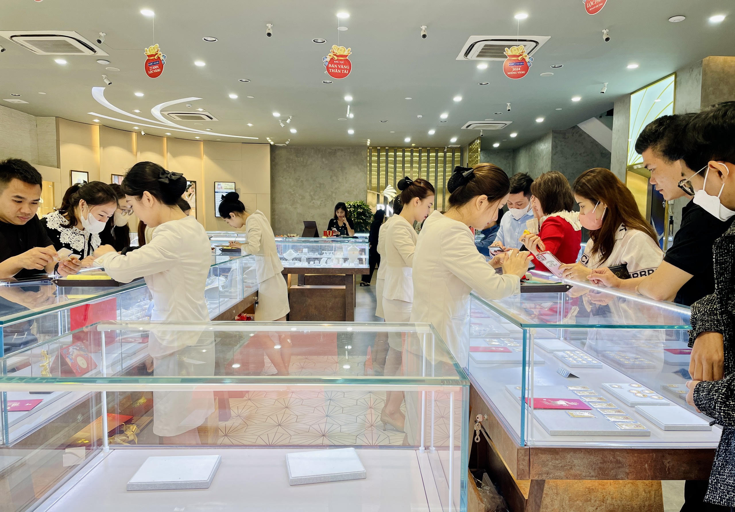Du khách được nhân viên tiệm vàng phục vụ nhiệt tình. Ảnh: Thiên Ý