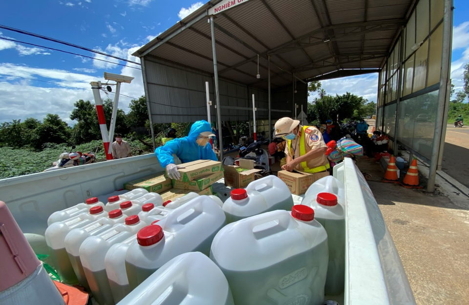 Người dân từ vùng dịch về quê được tiếp xăng và nhu yếu phẩm khi đi qua tỉnh Kon Tum
