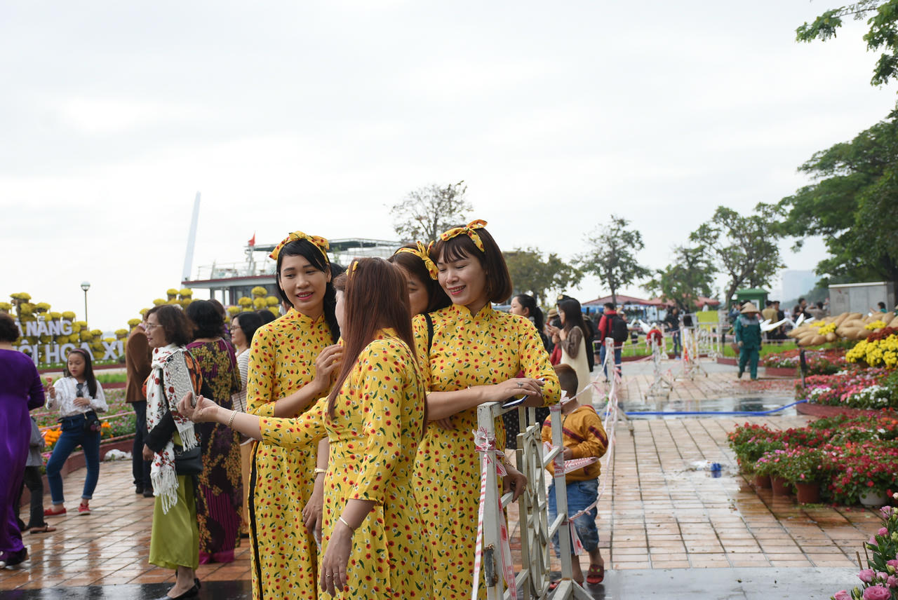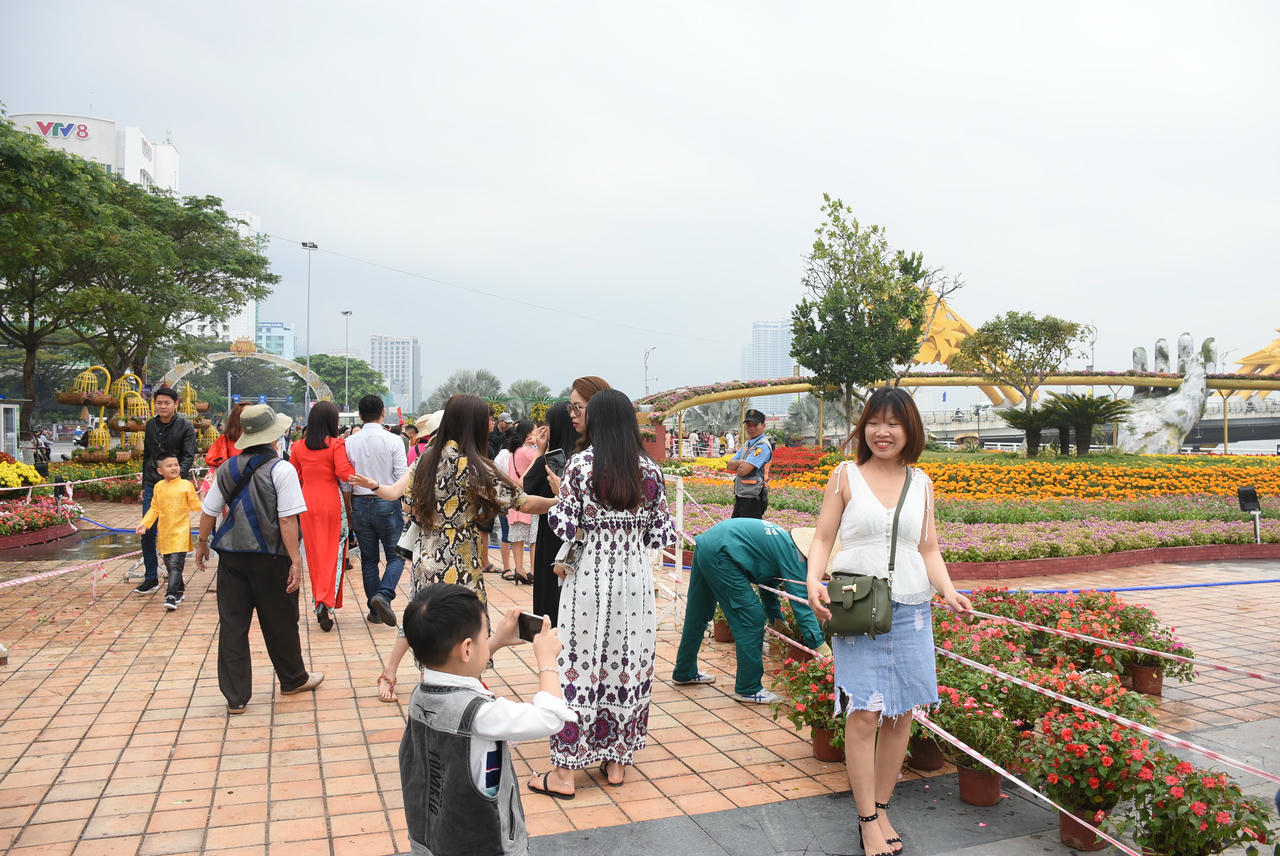 Những ngày này, đường hoa Đà Nẵng nằm ở phía Tây cầu Rồng (quận Hải Châu, TP.Đà Nẵng) bên cạnh sông Hàn tập trung rất đông người và là điểm nhấn trong số các công viên, đường hoa, điểm đến tham quan, thưởng lãm không khí xuân.