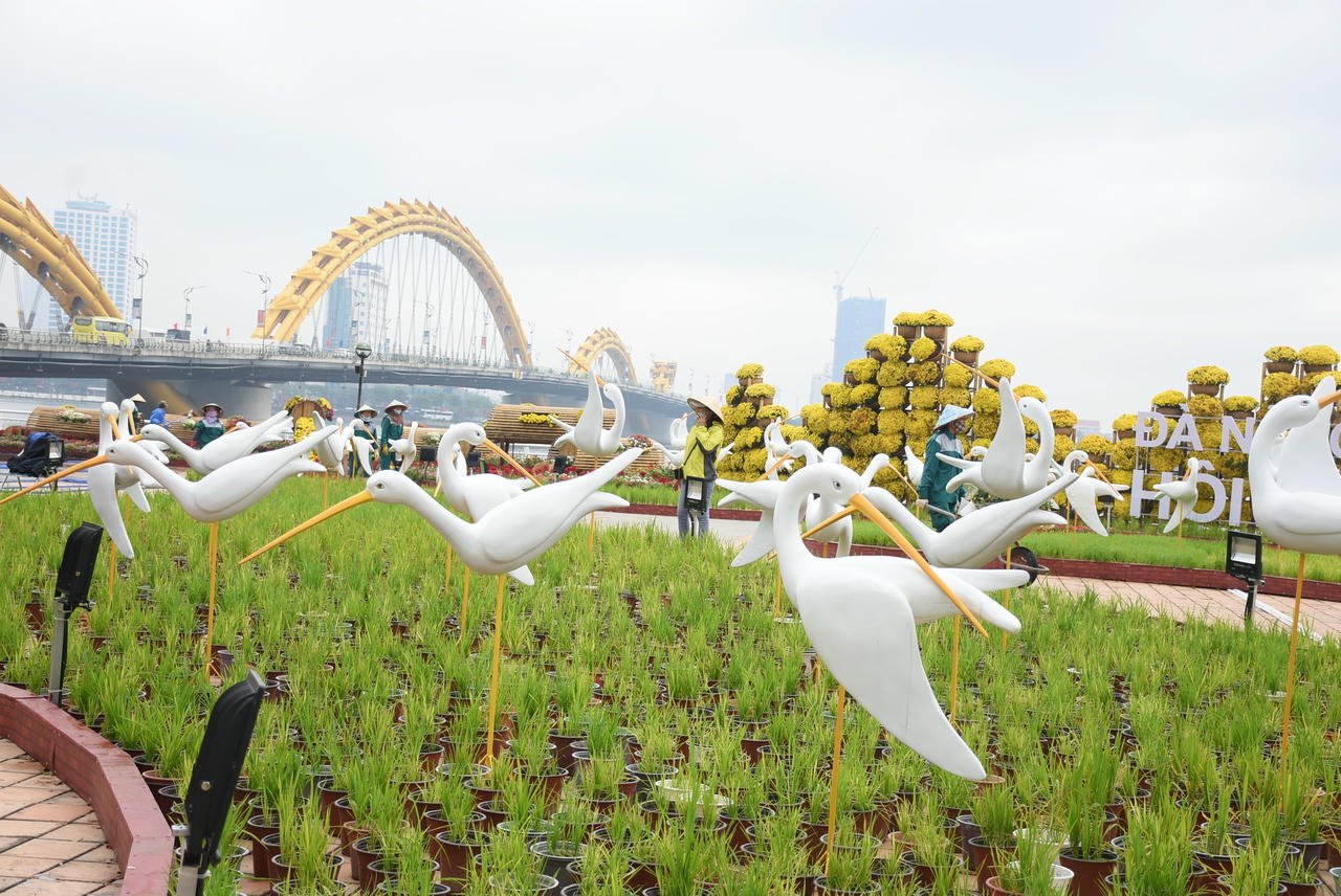 Theo đơn vị tài trợ thi công đường hoa Tết (Công ty CP Tập đoàn Mặt Trời), việc trang trí đường hoa được pha quyện hài hòa giữa truyền thống với hiện đại, lấy cảm hứng từ biển cả bao la, khát vọng vươn khơi, bay cao, bay xa trong năm mới. Điều đặc biệt, mô hình cầu Vàng phỏng theo cầu Vàng nổi tiếng trên đỉnh Bà Nà được tái hiện lại bên chân cầu Rồng. Mô hình kết tạo chủ yếu bằng cây xanh, kích thước bằng 1/4 kích thước của cầu Vàng thật.