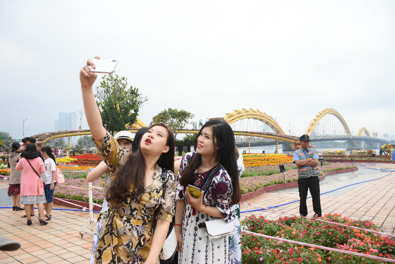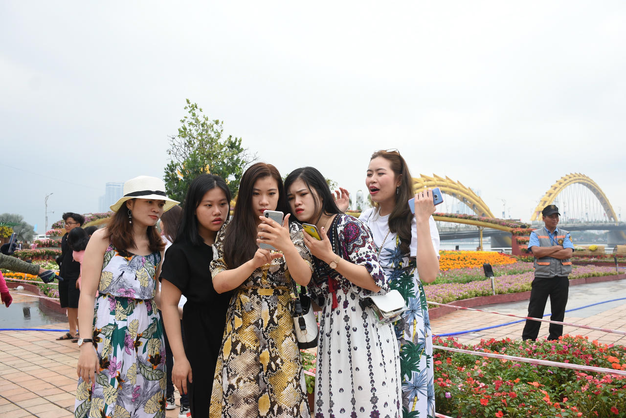 Một số hình ảnh du khách du xuân, thưởng lãm công trình đường hoa xuân Đà Nẵng: