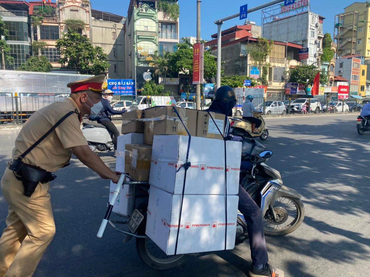 Cảnh sát giao thông hỗ trợ, giúp đỡ người dân di chuyển trên đường. |