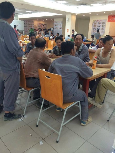 Trong khu căng tin của KTX, những công nhân lao động tại đã bình tâm trở lại và trò chuyện với nhau. Trước vụ việc này, bạn đọc Nguyen Rebecca chia sẻ:"Đây cũng là những người dân nghèo xa quê giống người Việt Nam ta lao động ở xứ người. Khổ lắm các bạn à, không nên bạo động, mất hình ảnh đẹp vốn có từ xưa của người dân Việt Nam". Ảnh: Bạn đọc cung cấp.