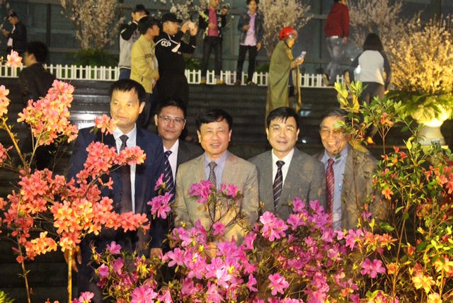 | Ông Trần Văn Vinh, Chủ tịch HĐND tỉnh Vĩnh Phúc cùng đoàn đại biểu chụp ảnh cùng các loài Hoa của Vĩnh Phúc |