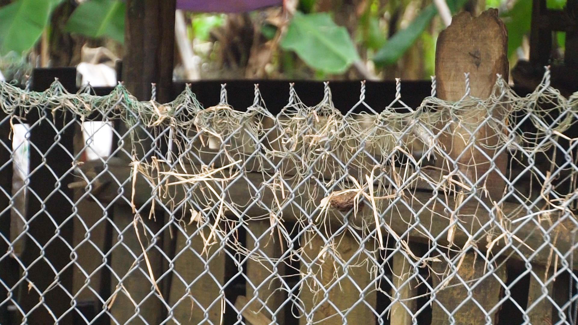 Nước rút đi rác còn mắc lại trên lưới sắt. |