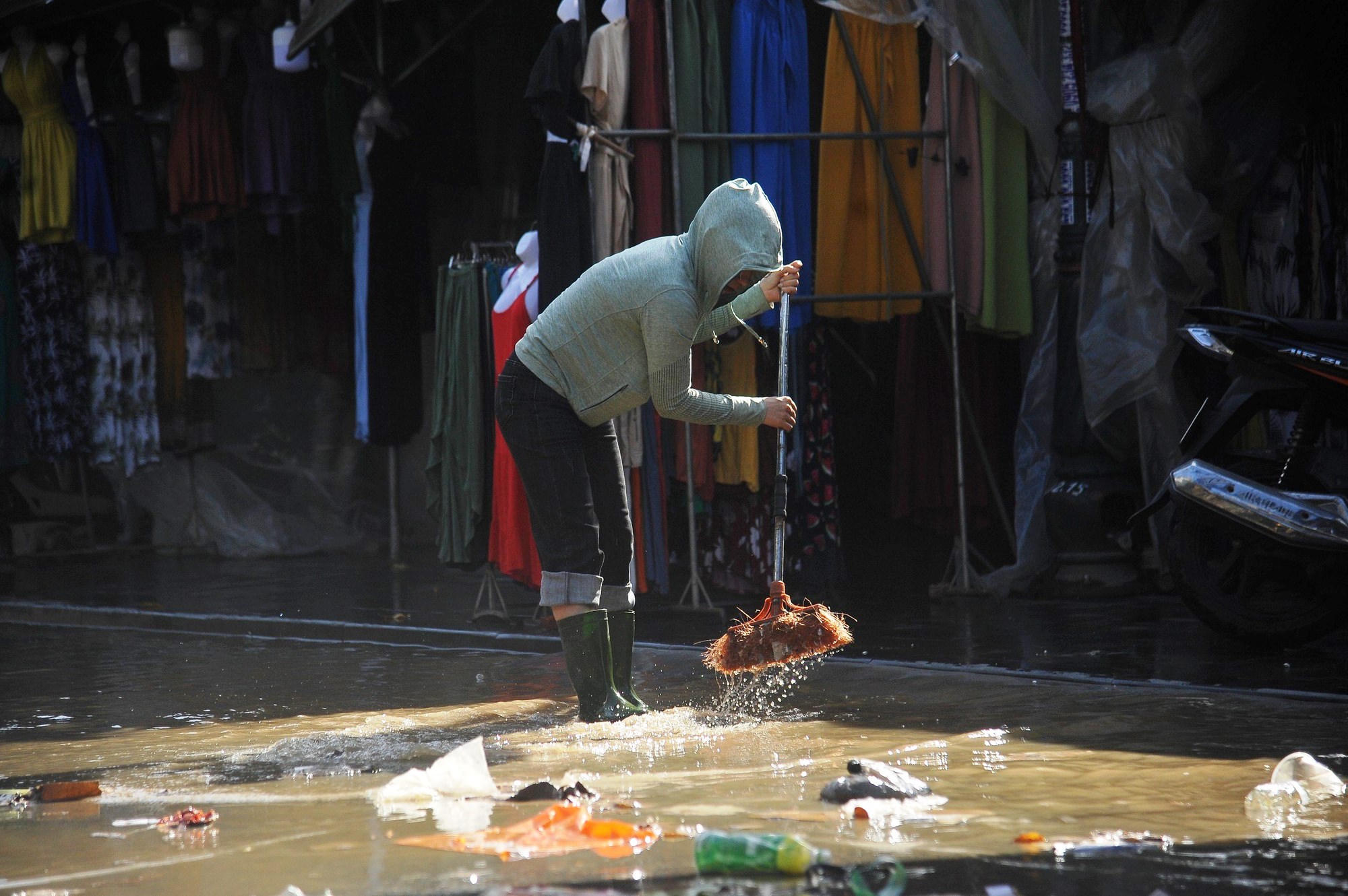 Người dân tất tả dọn sạch đường phố để sớm nối lại việc kinh doanh.