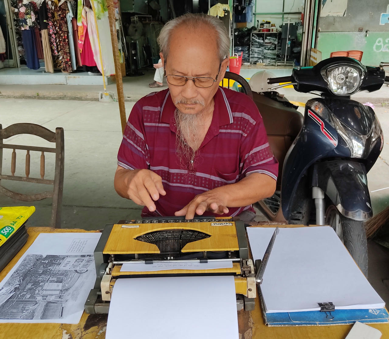 Ông Việt cho hay, hiện đại đa số mọi người đều dùng máy vi tính để soạn thảo đơn từ, nên công việc của ông không còn bận rộn như trước. Nhưng không vì thế mà “lỗi hẹn” với chiếc máy đánh chữ ngày nào, bất kể thời tiết ra sao, ông đều đặn ra đây ngồi, kiên trì với công việc.