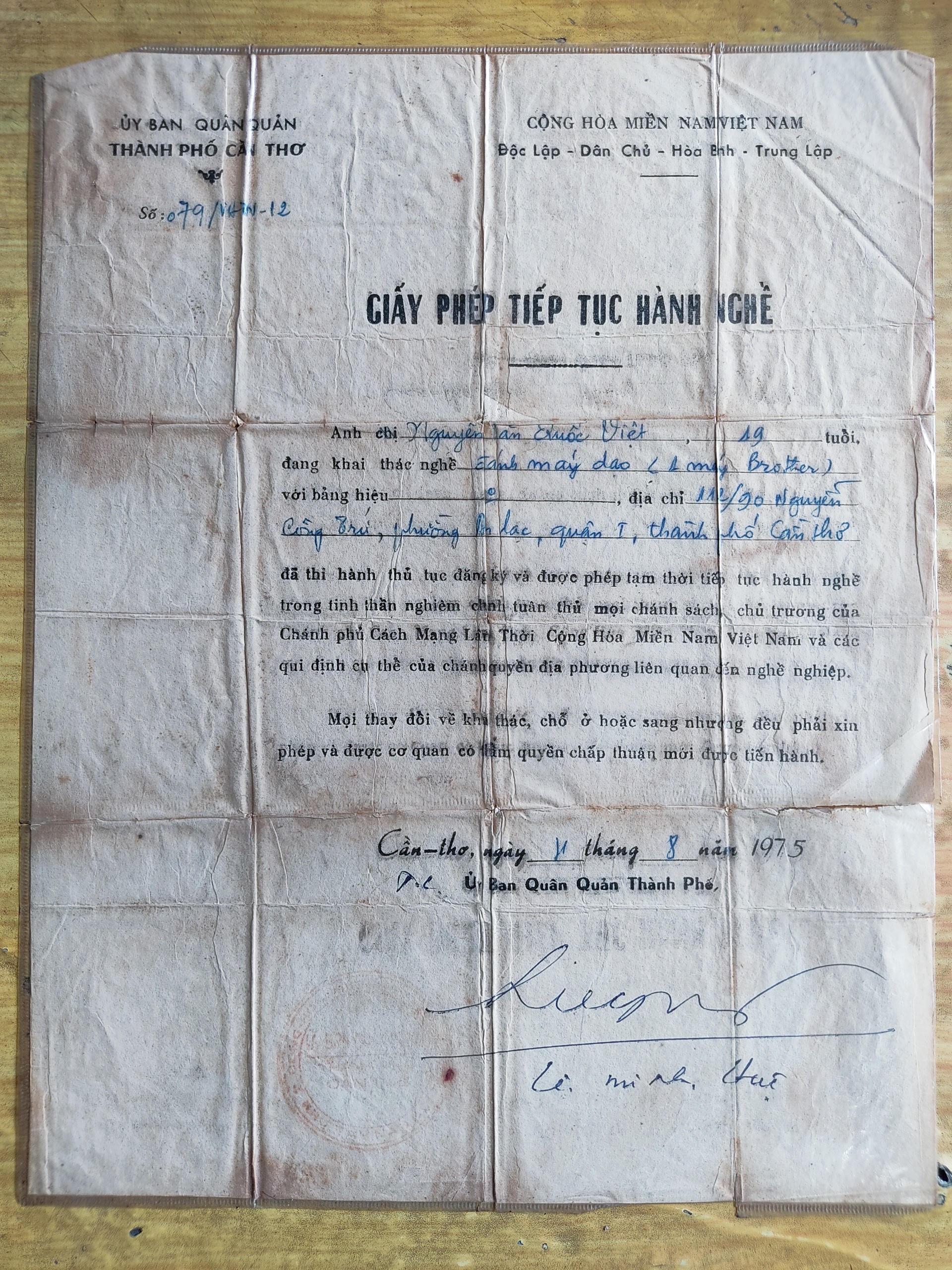 Tại một góc khu vực chợ An Lạc (quận Ninh Kiều, TP Cần Thơ), cứ đều đặn mỗi ngày vào 8h sáng lại xuất hiện bóng dáng của ông cụ tuổi lục tuần ra ngồi thảo đơn cho khách. Đó là ông Nguyễn Văn Quốc Việt (66 tuổi), người gắn bó với công việc này gần 50 năm, cũng là người cuối cùng tại đây còn dùng máy đánh chữ.