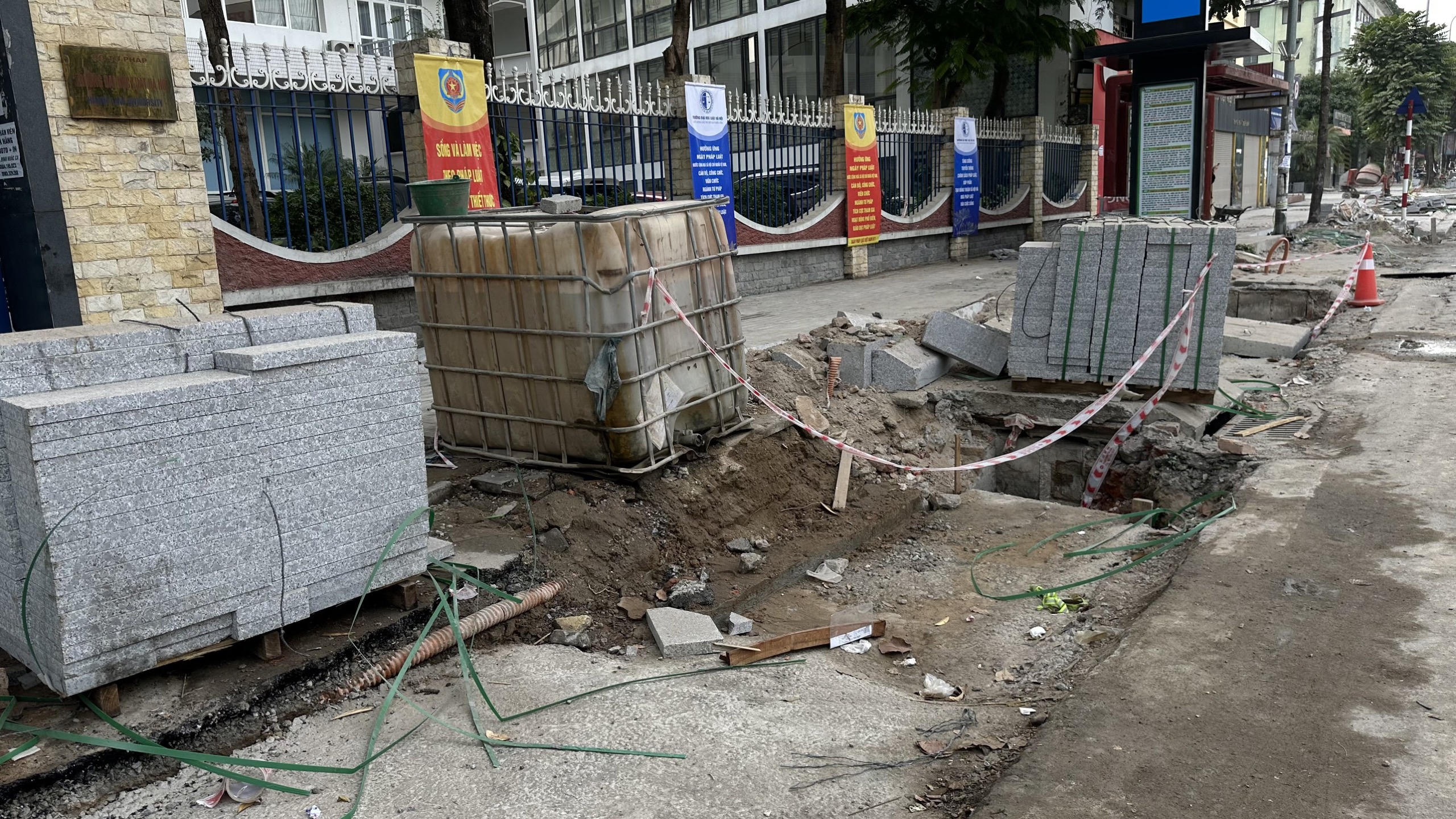 Chia sẻ với Báo PLVN, N.M. P sinh viên năm thứ 2 trường Đại học Luật cho biết: "Em ngày nào cũng đi bộ trên đoạn đường này, tuy nhiên 1 tháng nay đường đào lên để làm lại vỉa hè, nên chúng em toàn phải đi xuống lòng đường, mà như vậy rất mất an toàn giao thông. Đường lại bụi khiến em cũng cảm thấy khó chịu, lên tới lớp quần áo cứ bẩn hết cả. Rồi thì rác vật liệu làm xong cũng vứt lung tung, nhìn rất mất mĩ quan. Em thấy các đơn vị thi công làm quá lâu, vỉa hè là nơi để người dân đi bộ mà giờ thì cũng không đi được. Mong sao các đơn vị này làm nhanh để trả lại phần đường đi bộ cho ngừơi dân".