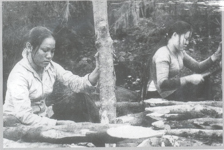Các nữ thanh niên xung phong vót cọc tiêu dẫn xe qua Truông Bồn. Nguồn: Báo Nghệ An |