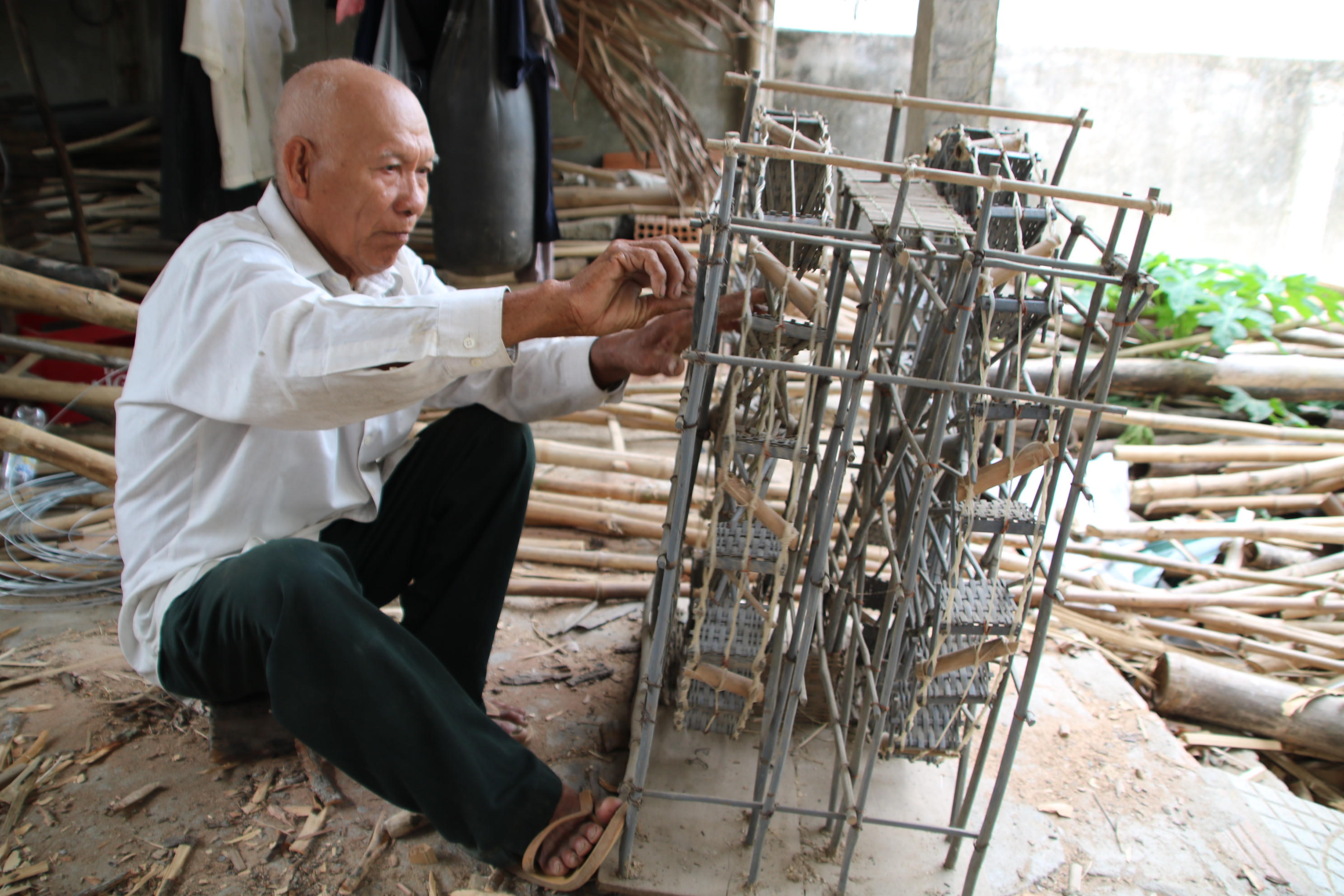 (PLVN) - Biểu tượng độc đáo của người dân xứ Quảng vẫn được ông Mai Văn Quýt (73 tuổi, ngụ thôn Thống Nhất, xã Tịnh Ấn Tây, TP Quảng Ngãi, tỉnh Quảng Ngãi) sống bên bờ sông Trà cần mẫn tái hiện.