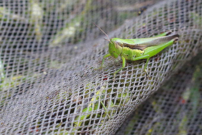 Người dân dùng vợt để bắt châu chấu.