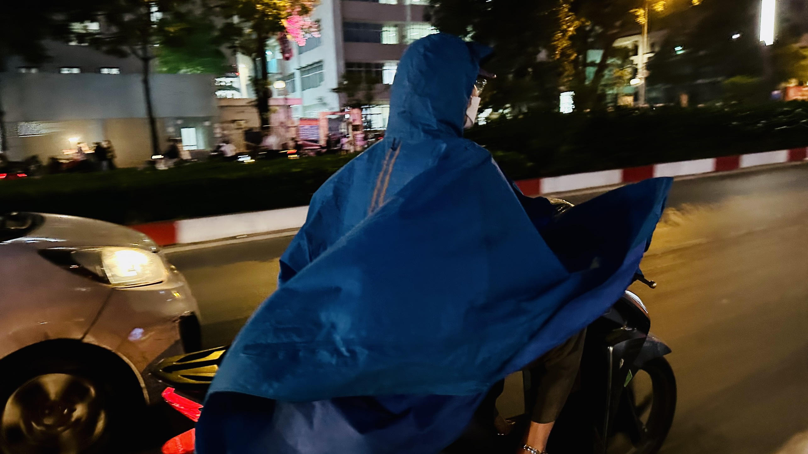Nhiều người chưa kịp chuẩn bị cho mình áo khoác, buộc phải khoác một chiếc áo mưa để giữ ấm
