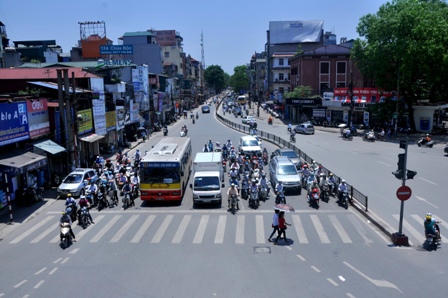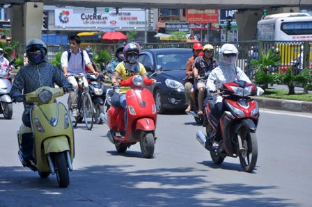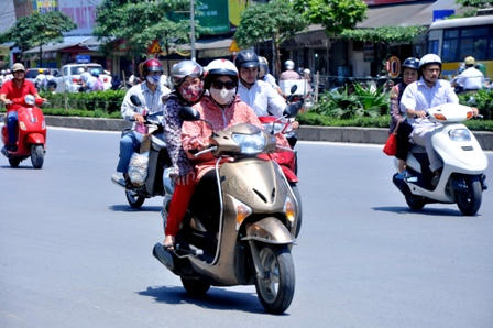 Tham gia giao thông đầy khó khăn của mọi người trong thời tiết nắng nóng.