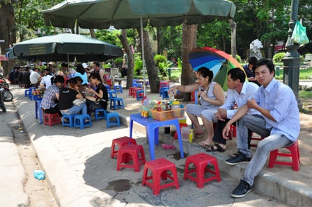 Những quán trà đá ven đường, bóng râm là những nơi dùng chân nghỉ ngơi lý tưởng trong thời tiết này.