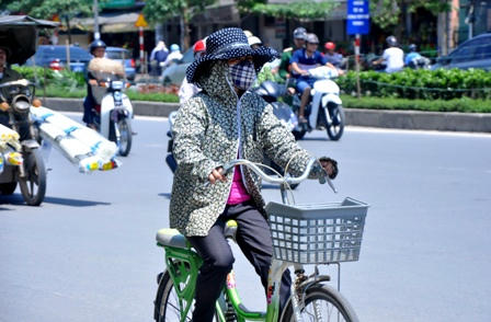 (PLO) - Sau chuỗi thời gian ẩm ướt, hôm nay (5/9), người dân Hà Nội lại phải chịu cái nắng gay gắt của mùa hè ngay từ sớm. Nền nhiệt độ ngoài trời hơn 35 độ C khiến cho việc đi lại, sinh hoạt hàng ngày của người dân đảo lộn.