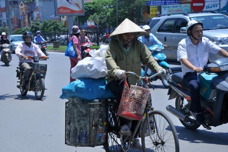 Nhọc nhằn cuộc sống mưu sinh của những người lao động luôn phải di chuyển trên đường dưới thời tiết oi bức.