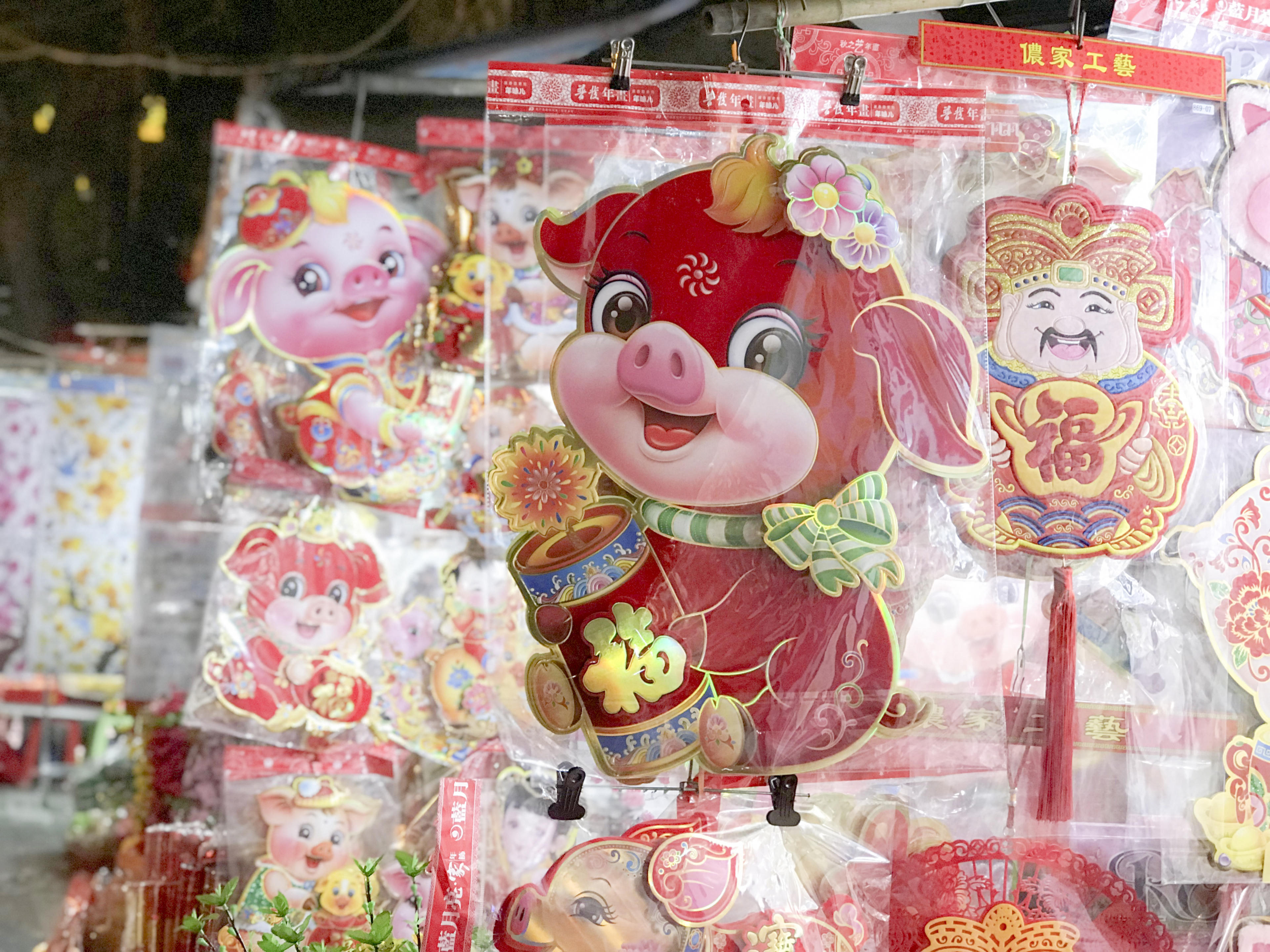 Hình ảnh những chú lợn ngộ nghĩnh, biểu tượng cho năm Kỷ Hợi bày bán khá nhiều.