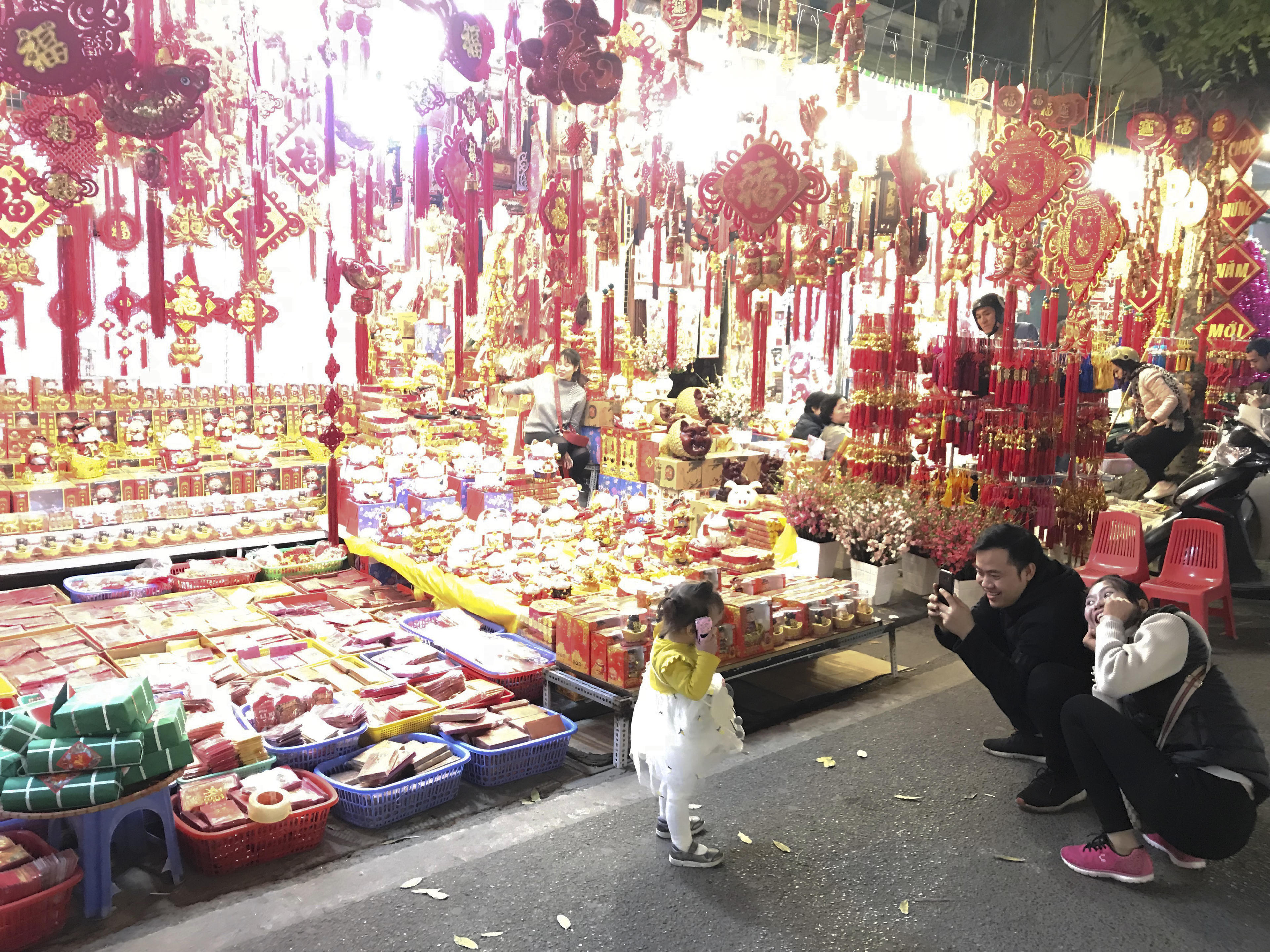 “Cuối tuần nên tôi đưa vợ con đi chơi, mua ít đồ mang về quê trang trí nhà cho bố mẹ. Chứng kiến con phố này chìm trong sắc đỏ, ánh đèn và dòng người nhộn nhịp đông đúc, có thể cảm nhận được không khí Tết ấm áp đang đến rất gần. Cả Tết gia đình tôi ở quê nên đây cũng là dịp được tận hưởng không khí Hà Nội dịp Tết cổ truyền. Tết quê không đông đúc, náo nhiệt và đẹp bằng Hà Nội”, anh Hưng bày tỏ.