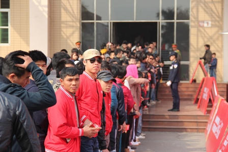 (PLO) - Sáng 1/1, hàng nghìn người dân Hà Nội tập trung về Cung văn hóa Quần Ngựa để ngắm cúp FIFA nặng 1,675 kg vàng nguyên khối.