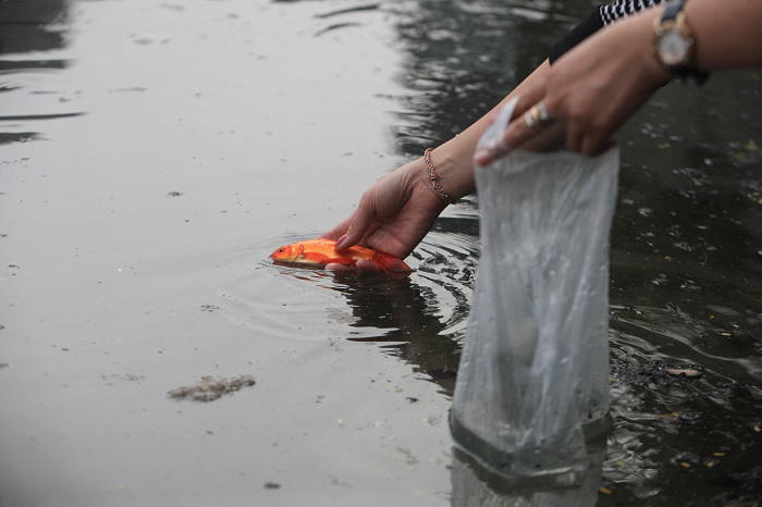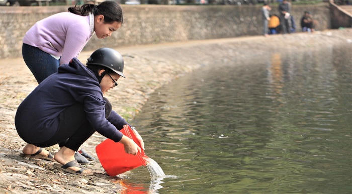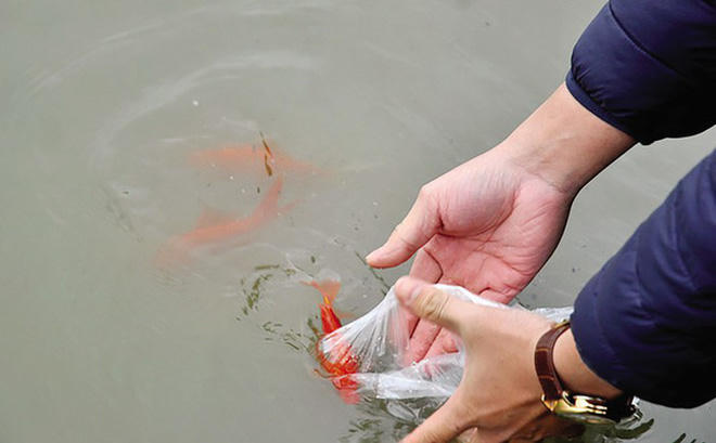 Người Hà Nội thả cá chép tiễn ông Táo về trời