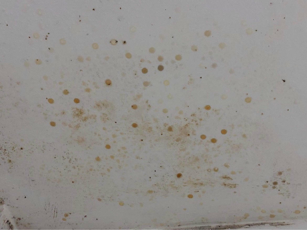 Mọi sinh hoạt gia đình gần như bị đảo lộn trong những ngày nồm, gia đình chị Nguyễn Thị Hồng Thái (Yên Hòa, quận Cầu Giấy) dù đã trang bị máy hút ẩm mini nhưng vẫn không mấy hiệu quả. Trần nhà tắm của gia đình chị Thái xuất hiện những đốm vàng kèm theo mốc trông rất mất mỹ quan.