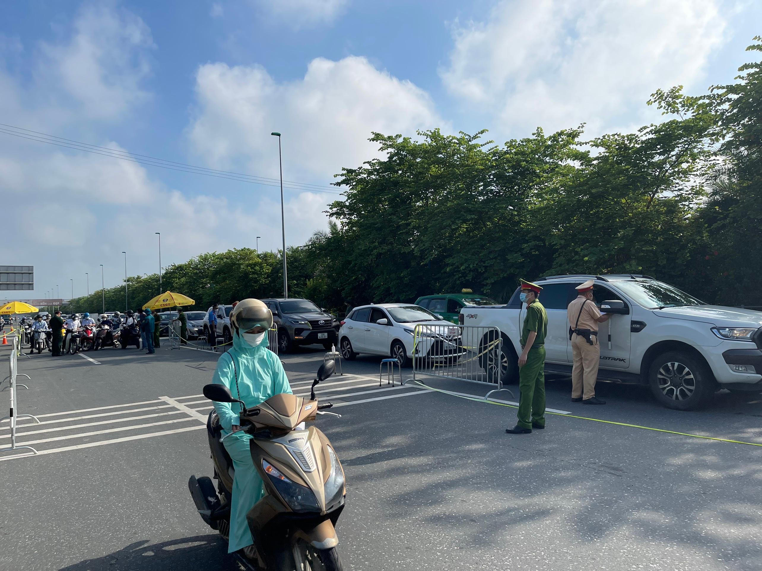 Tại điểm chốt trên các tuyến đường: Nguyễn Chí Thanh, Võ Chí Công, Võ Nguyên Giáp, Trần Nhật Duật…, người ra – vào “vùng đỏ” được kiểm soát chặt.