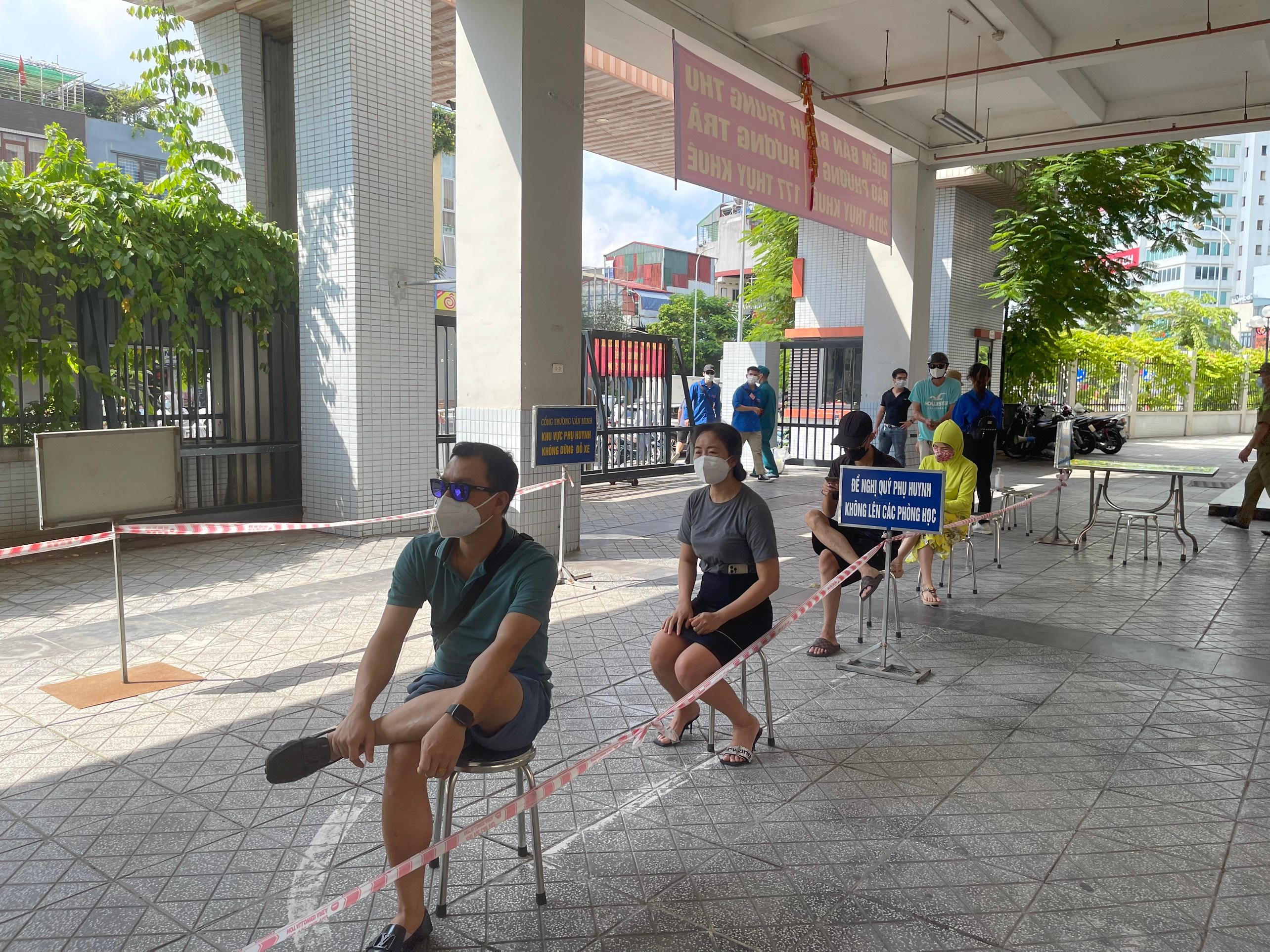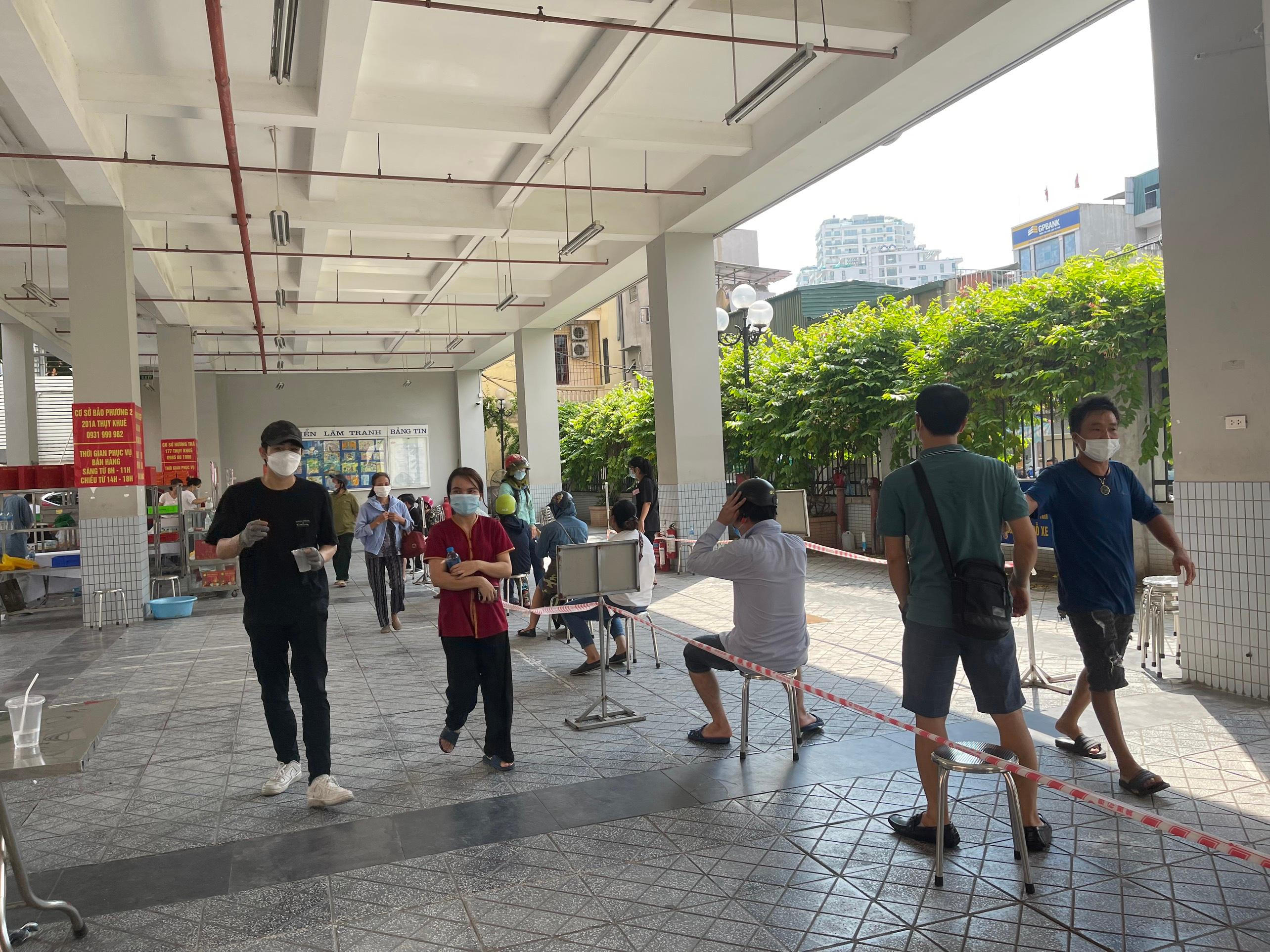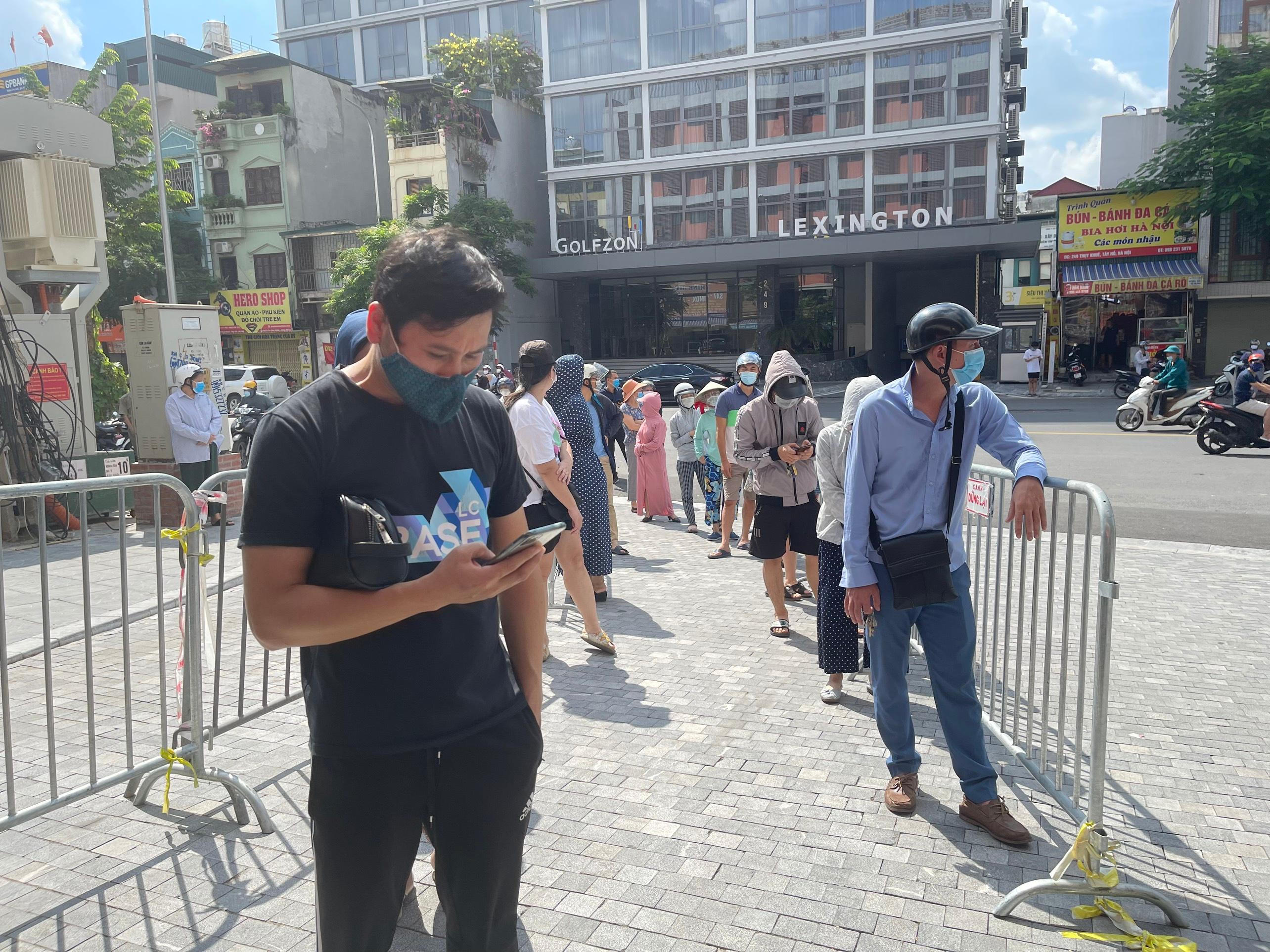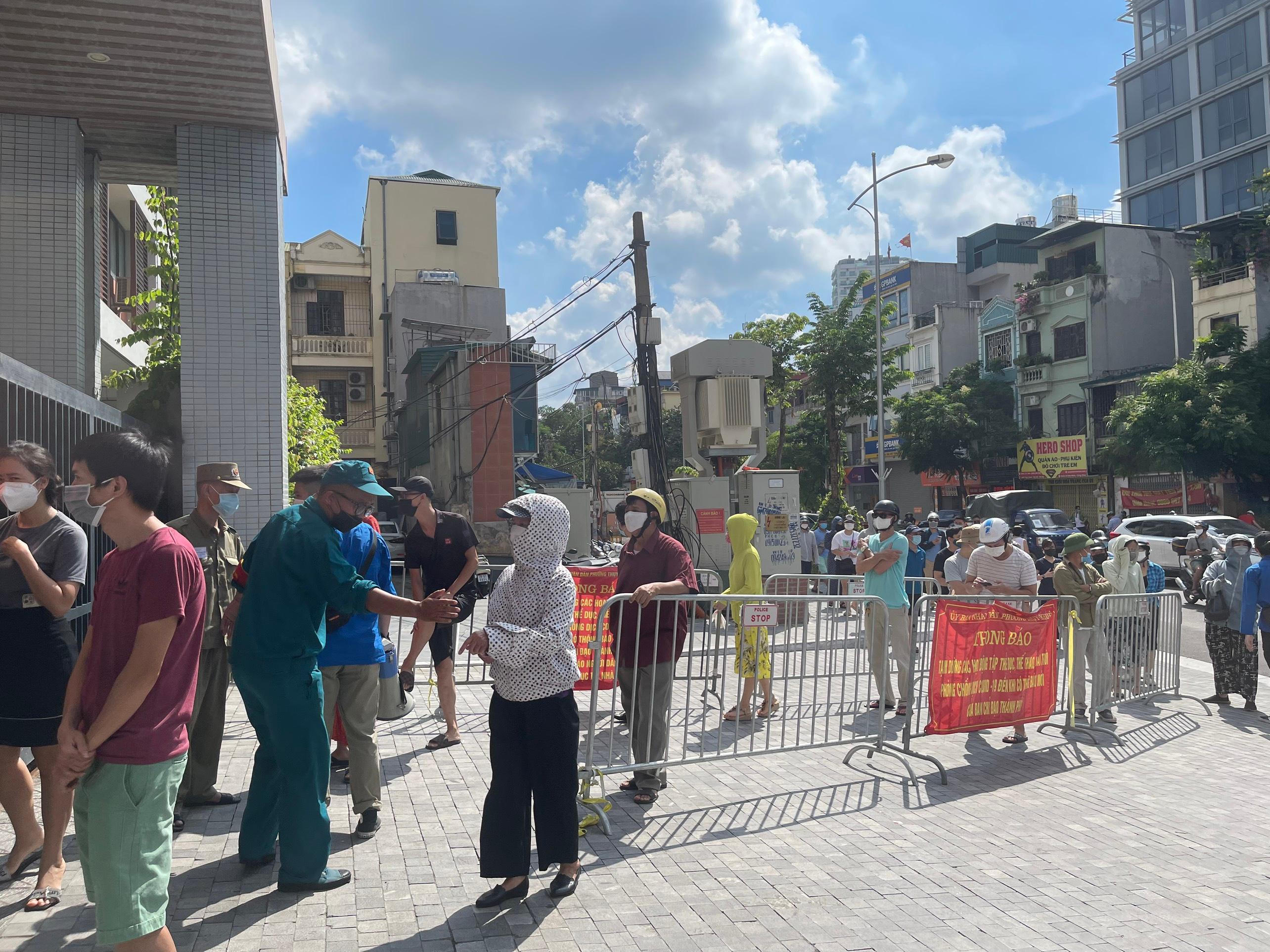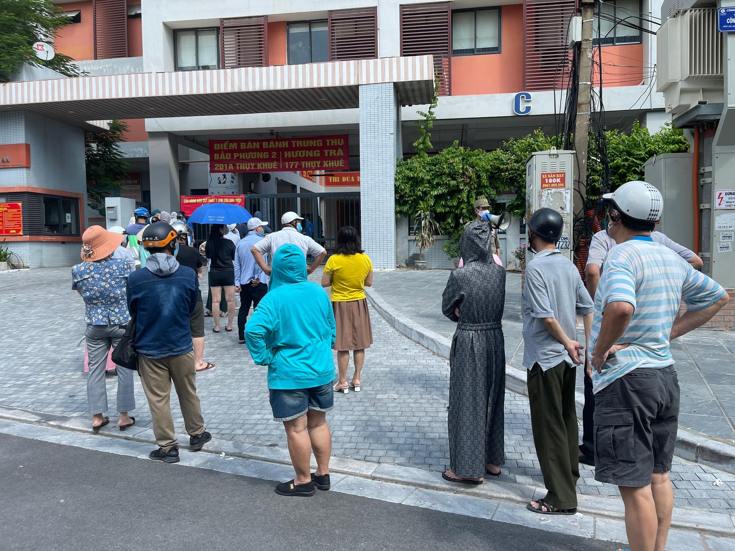 Hôm nay, do lượng người đến quá đông, lực lượng công an, dân phòng phường Thuỵ Khuê thường xuyên phát loa thông báo mọi người giữ khoảng cách an toàn, phòng chống dịch COVID-19. Nhiều người sẵn sàng đội nắng hàng giờ đồng hồ để được đến lượt mua bánh.