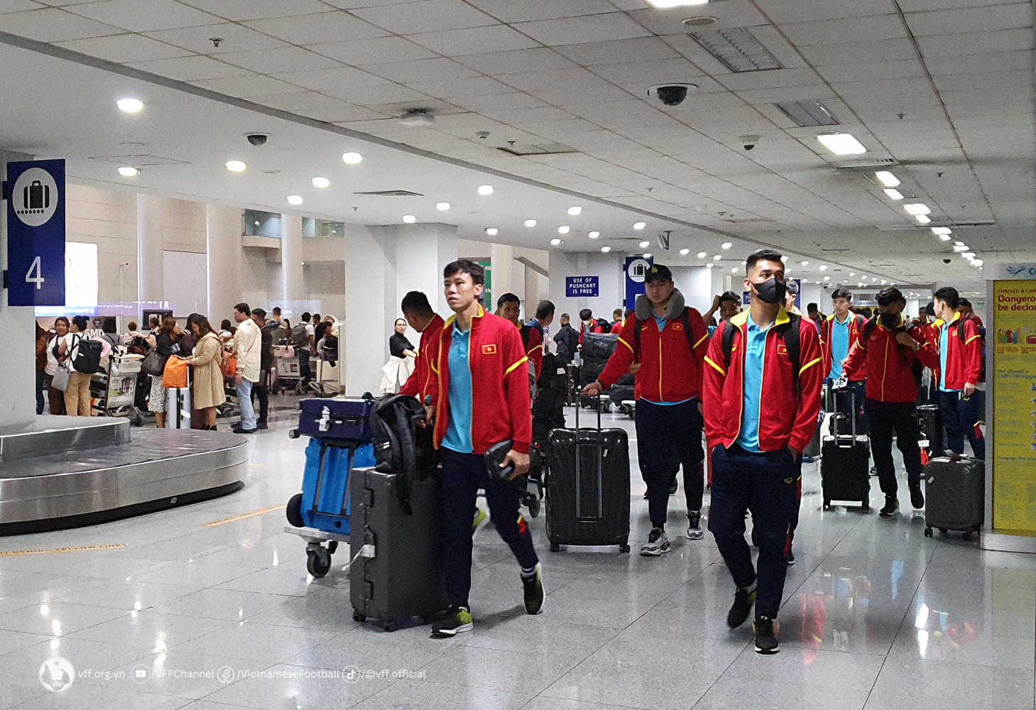 Sau khi hoàn thành thủ tục nhập cảnh ở sân bay, thầy trò HLV Philippe Troussier đã nhận được sự chào đón nồng nhiệt của các cổ động viên Việt Nam đang sinh sống và làm việc tại Philippines.