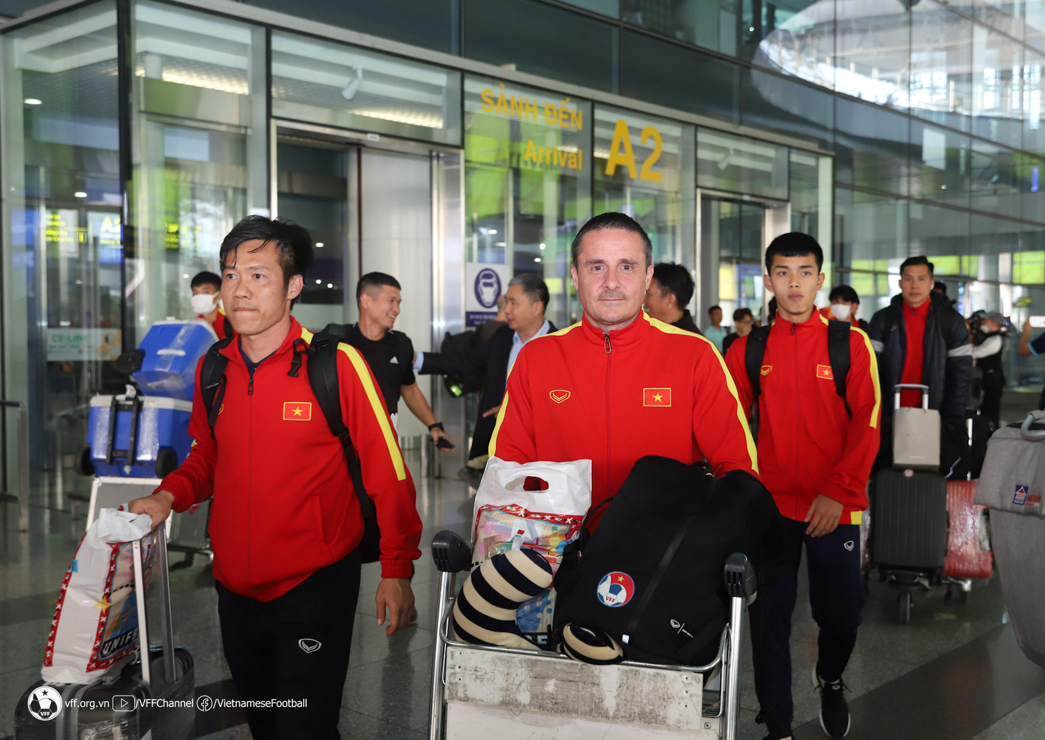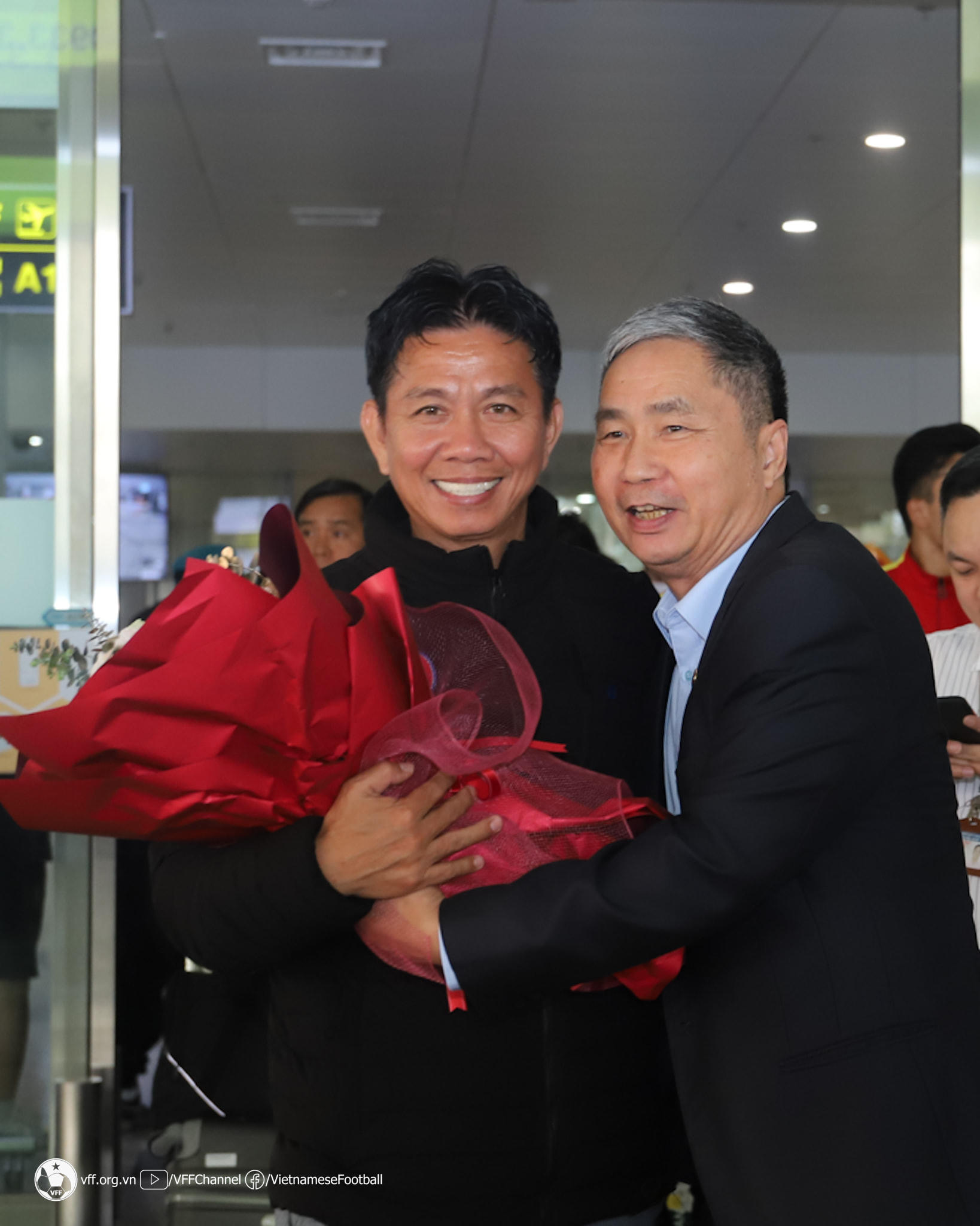 Đại diện lãnh đạo VFF ra sân bay đón đội trở về, Tổng thư ký Dương Nghiệp Khôi đã tặng hoa chúc mừng và gửi động viên, khích lệ tới HLV trưởng Hoàng Anh Tuấn cùng các thành viên của đội.