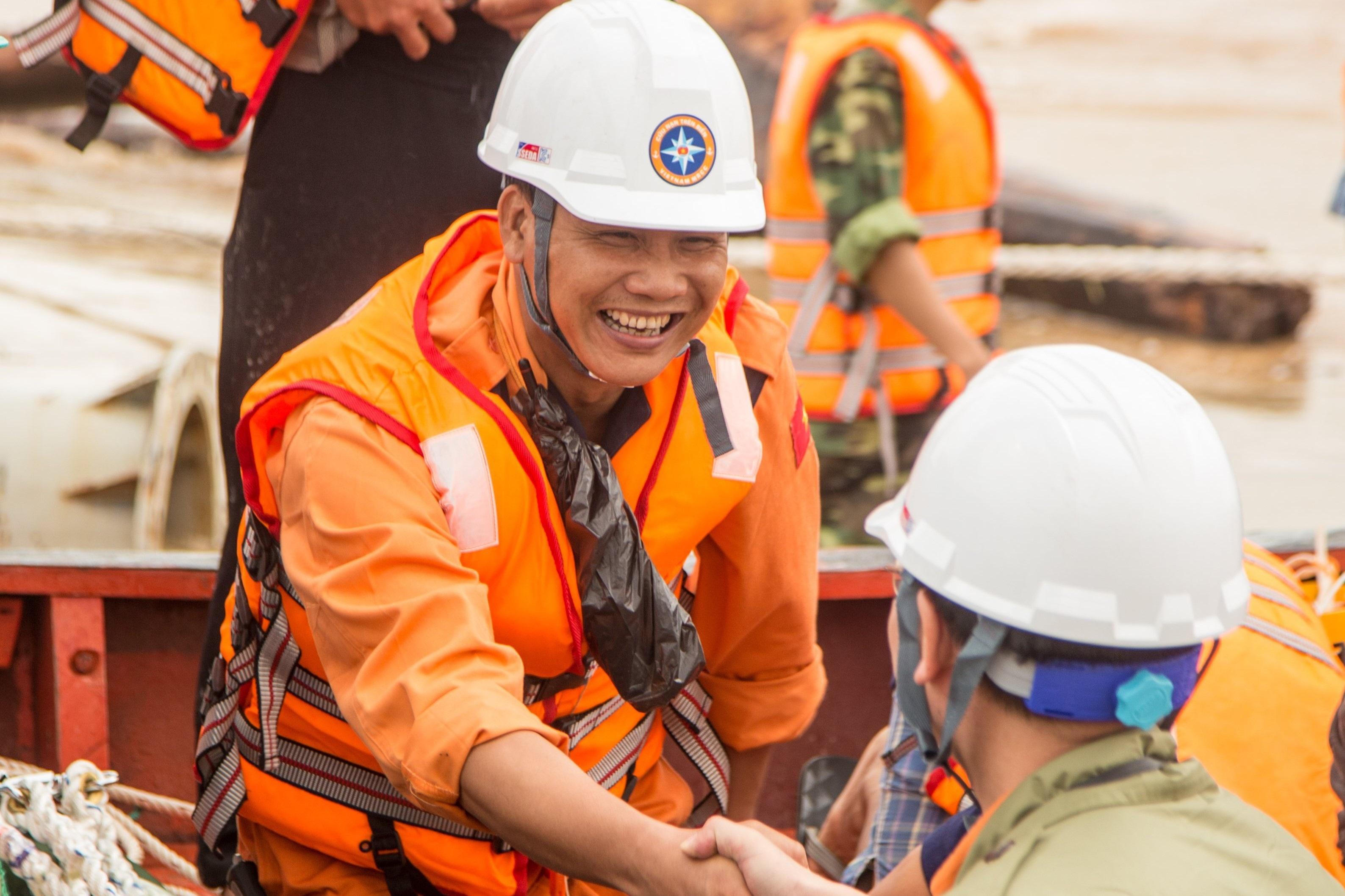 Trong khi đó, các đồng nghiệp của anh vừa ra chưa nắm rõ được tính chất của sóng, dòng chảy. Vì vậy, anh Khôi tiếp tục xung phong đề xuất chỉ huy hiện trường để anh điều khiển xuồng công tác cùng các đồng nghiệp tiếp cận tàu Vietship 01 thêm một lần nữa.