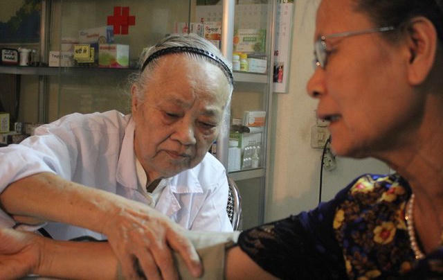 Và đặc biệt hơn, vị Từ mẫu ấy là bác sĩ tuổi U90. Mái đầu bạc trắng, ánh mắt tinh nhanh, nụ cười đôn hậu, bị bác sĩ già Trương Thị Hồi Tố - bác sĩ già 86 tuổi (sinh năm 1933) ân cần hỏi han tình trạng sức khỏe của từng bệnh nhân.