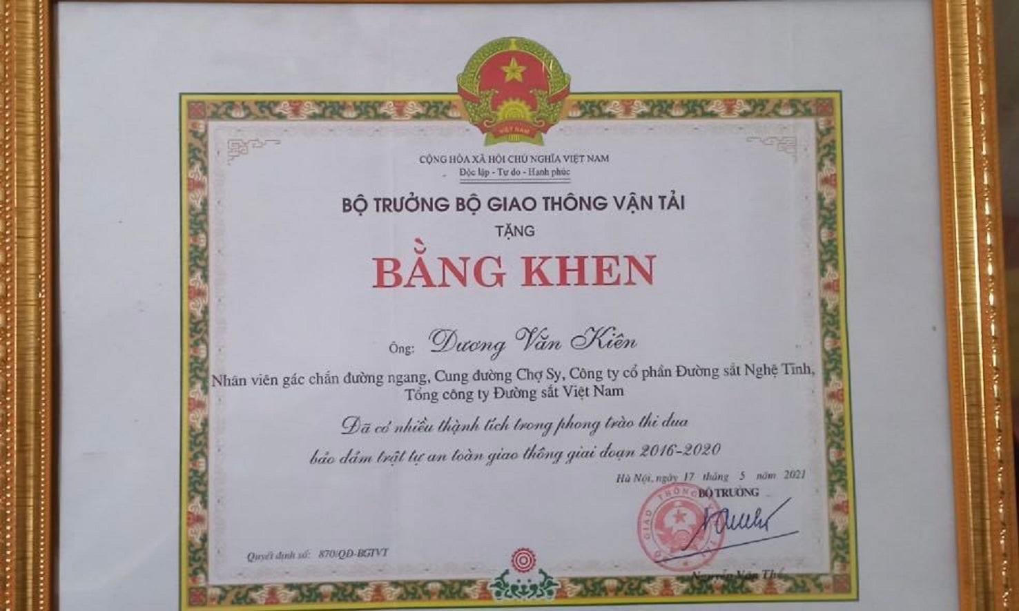 Năm 1994, sau khi tốt nghiệp Trường Trung cấp Đường sắt, anh Dương Văn Kiên (SN 1976, quê xã Diễn Yên, huyện Diễn Châu, Nghệ An) được phân công về Công ty cổ phần Đường sắt Nghệ Tĩnh. Thời gian đầu, anh làm việc tại gác chắn thuộc cung đường Yên Lý. Đến năm 1998, anh được phân công về trạm gác chắn ở Km273+620 thuộc cung đường chợ Sy (huyện Diễn Châu) cho đến nay.