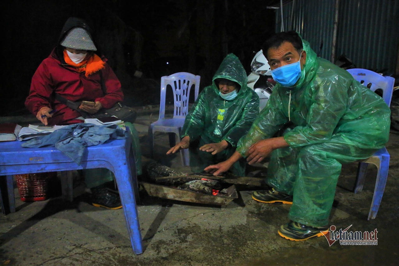 Những chiếc áo mưa quấn quanh người không thể đủ làm ấm cơ thể. Những chậu củi được đốt sưởi ấm chốc chốc lại có người đến ngồi xoa hai bàn tay vào nhau để tìm hơi ấm.