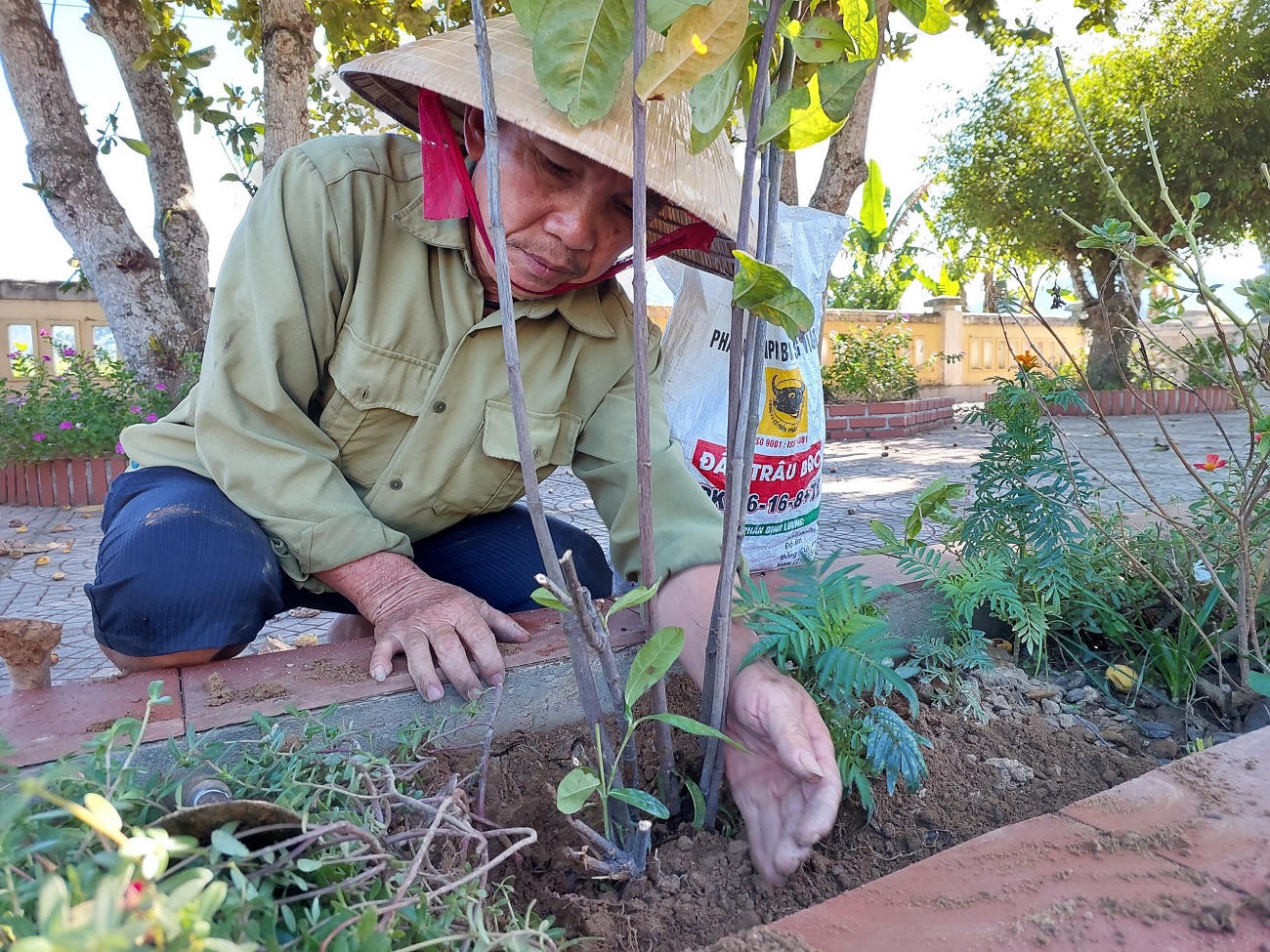 "Tôi thấy bác Quyền thường xuyên chăm lo vườn hoa, cây cảnh và từng phần mộ trong nghĩa trang rất chu đáo, ai đến dâng hương cho người thân, đồng đội cũng thấy phấn khởi." - ông Nguyễn Ngọc Toản, thôn Bàu, xã Tiến Hoá bày tỏ sự cảm phục.