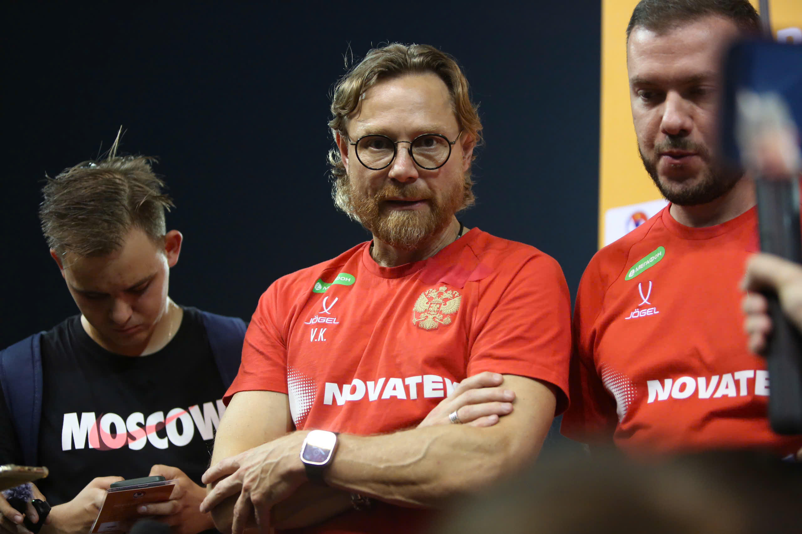 Đội tuyển Nga di chuyển bằng chuyên cơ đáp xuống sân bay Nội Bài, Hà Nội lúc 12h45 ngày 4/9. Chiều cùng ngày đội tuyển có buổi tập làm quen sân vận động Mỹ Đình. Tại đây, HLV trưởng đội tuyển Nga tuyên bố đội bóng của ông đến Hà Nội để vô địch.