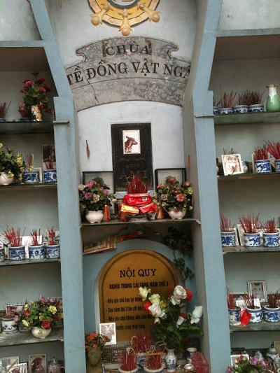 Ngoài việc nhận chăm sóc, phối giống, khuôn viên vui chơi cho thú cưng, ở khách sạn này còn xây kèm cả… đài hóa thân cho vật nuôi. Chó hoặc mèo đều có ảnh và “thông tin cá nhân” trên bia mộ, để chủ nhân thỉnh thoảng đến thắp hương, tưởng nhớ những con vật của mình. Khu nghĩa trang này có khoảng 250 phần mộ, chủ nhân của các con vật phải bỏ ra khoản chi phí khoảng 3 triệu đồng để hỏa táng, nếu chôn cất ở đây phải mất 8 triệu đồng, sau ba năm phải nộp phí duy trì từ 500 nghìn đến 1 triệu đồng. Đặc biệt, vào ngày Rằm tháng Bảy hàng năm, ông chủ khách sạn còn làm… đại lễ cầu siêu cho các con vật.