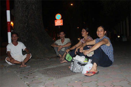 Cùng tâm trạng với bà Nghĩa, đoàn gia đình của ông Giang Văn Phan (ở Phúc Thọ - Hà Nội) cũng xác định ngủ tại vỉa hè trên phố Chu Văn An để chờ ngày mai xem diễu binh.