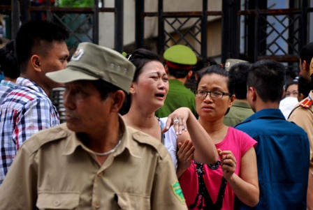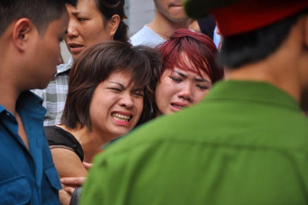 Người nhà nạn nhân gào khóc trước hiện trường vụ cháy quán karaoke
