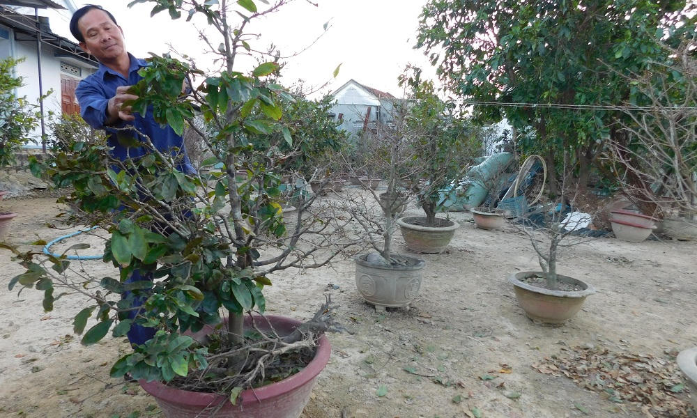 Rời Trung tâm TP Nha Trang khoảng 8 km, chúng tôi về làng mai Võ Dõng có tuổi đời trên 30 năm. Những ngày giữa tháng Chạp nhưng không khí có vẻ “trầm lắng, đìu hiu”, không còn cảnh nhà nhà tất bật chăm bón, tỉa lá, tỉa cành để mai kịp nở hoa xuất bán trong dịp Tết Nguyên Đán. Những người chơi mai, buôn mai cũng “vắng bóng” hẳn.