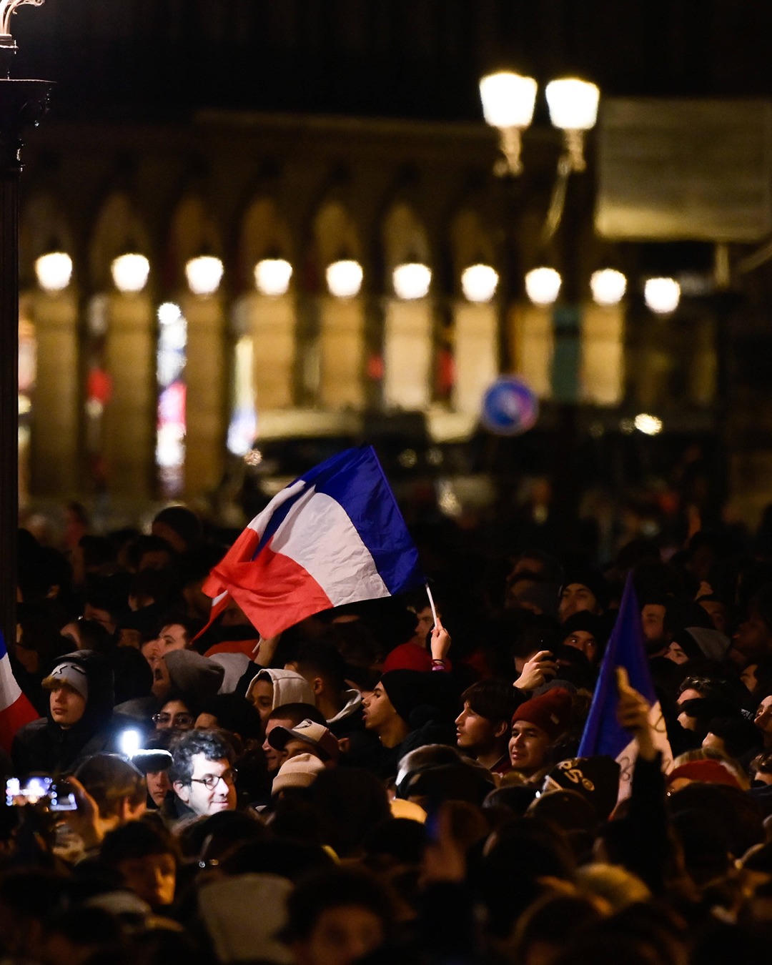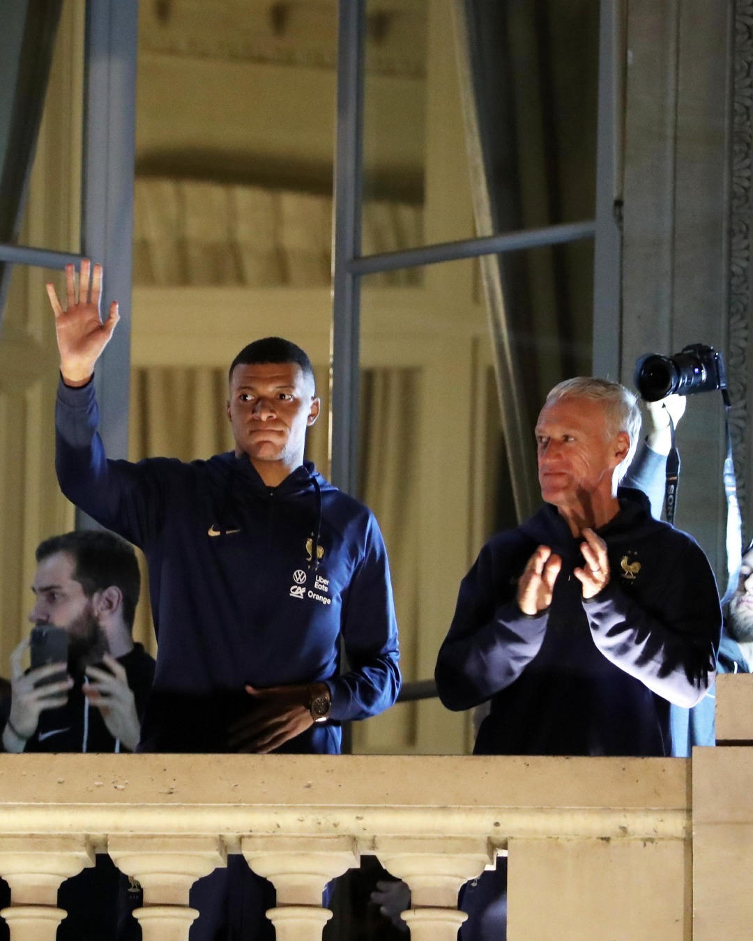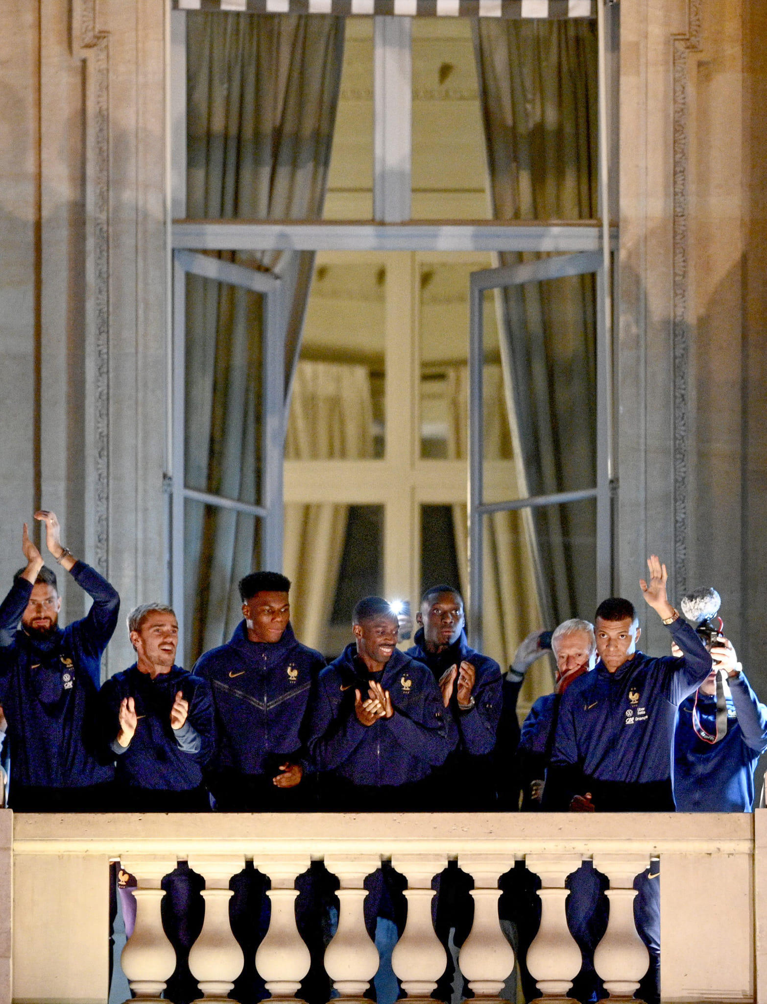 Mbappé và các đồng đội đã đáp xuống phi trường Roissy – Charles de Gaulle, ngoại ô phía bắc Paris. Đội tuyển Áo Lam không diễu hành trên đại lộ Champs Elysée, và đến thẳng Quảng trường Concorde để cảm ơn nhiệt tình của công chúng đã dành cho đội Pháp trong suốt mùa bóng.