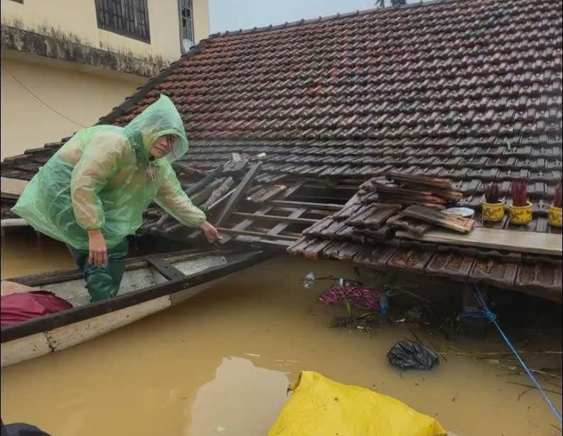 Theo người nhà, đêm 28/10, gia đình chia nhau trực để canh nước lũ dâng lên, mỗi lần nước dâng là một lần lo lắng. Nước ngập gần tới mái nhà bà H, chỉ còn chừng 30cm nữa sẽ đạt đỉnh lũ lịch sử năm 2020.